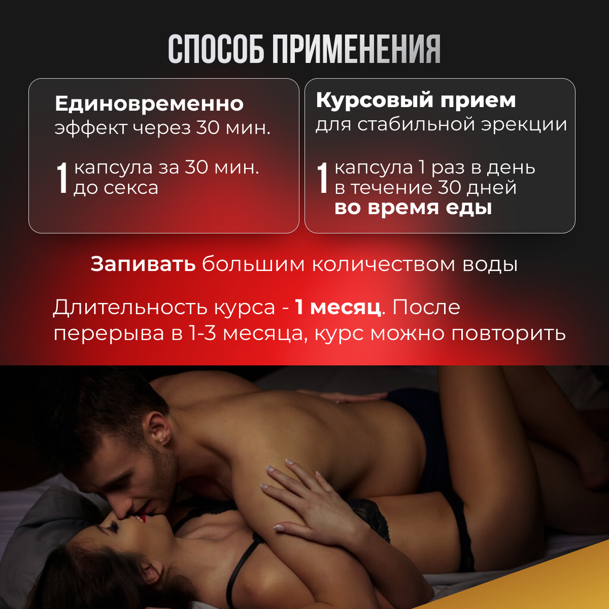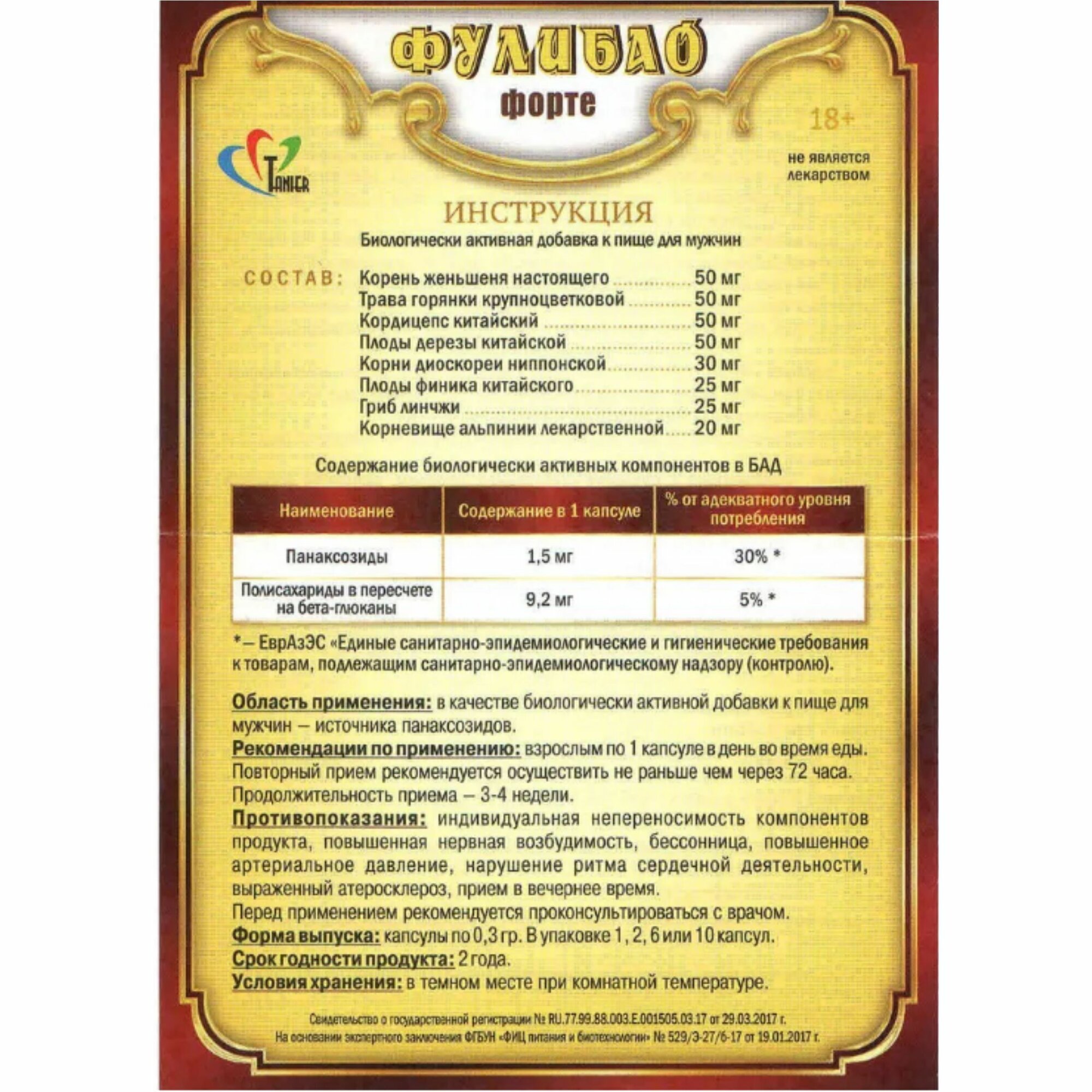 | Назначение | для укрепления мужского здоровья / для улучшения эректильной функции / импотенция / повышение либидо / повышение потенции / повышение сексуального влечения / профилактика заболеваний мочеполовой системы / профилактика заболеваний предстательной железы / эректильная дисфункция |