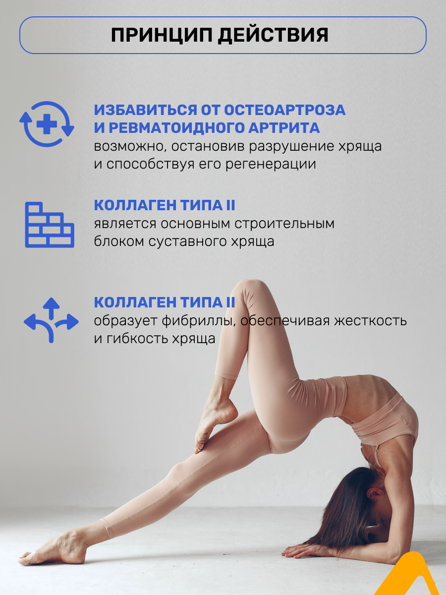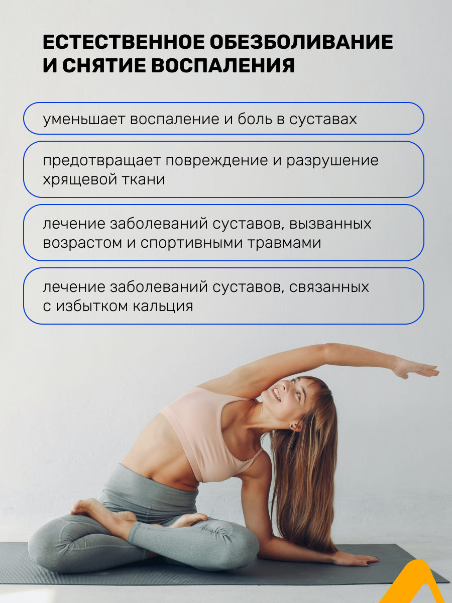 | Показания к применению | В качестве биологически-активной добавки к пище, как источник метилсульфонилметана, босвеллиевых кислот (Экстракт Босвеллии), неденатурированного коллагена II типа для обеспечения нормального функционирования опорно-двигательной системы и предупреждения развития дегенеративно- дистрофических изменений суставов. |