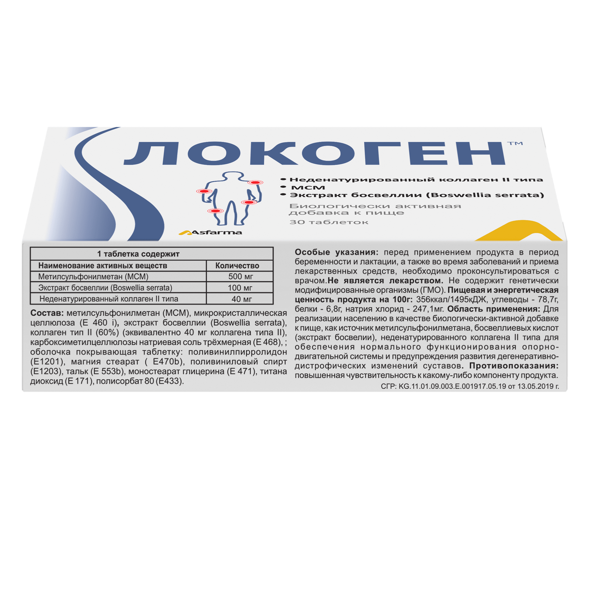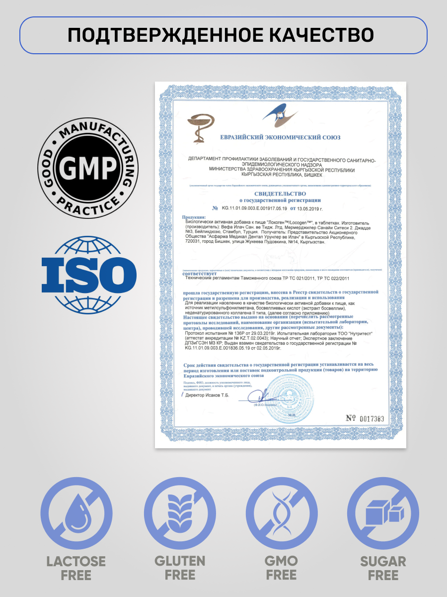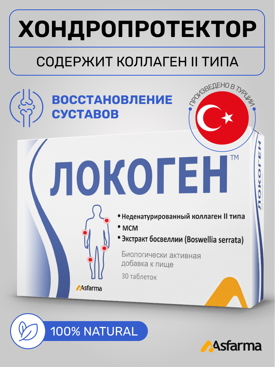 Коллаген 2 типа МСМ экстракт Босвеллии, 30 таблеток, Asfarma Локоген Турция интересное: