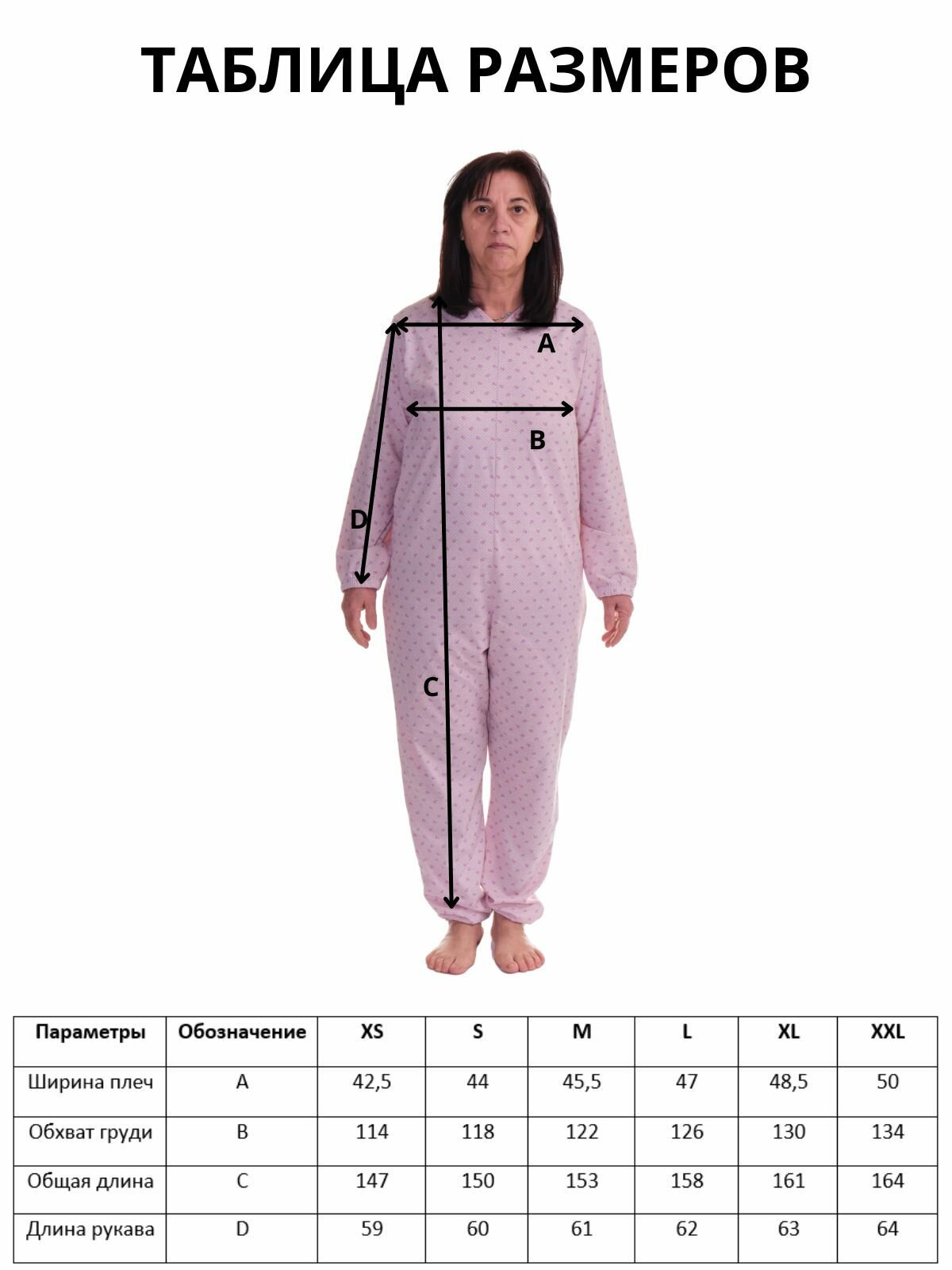 Адаптивное белье женское, Комбинезон-пижама для лежачих больных с 1 молнией, длинный рукав