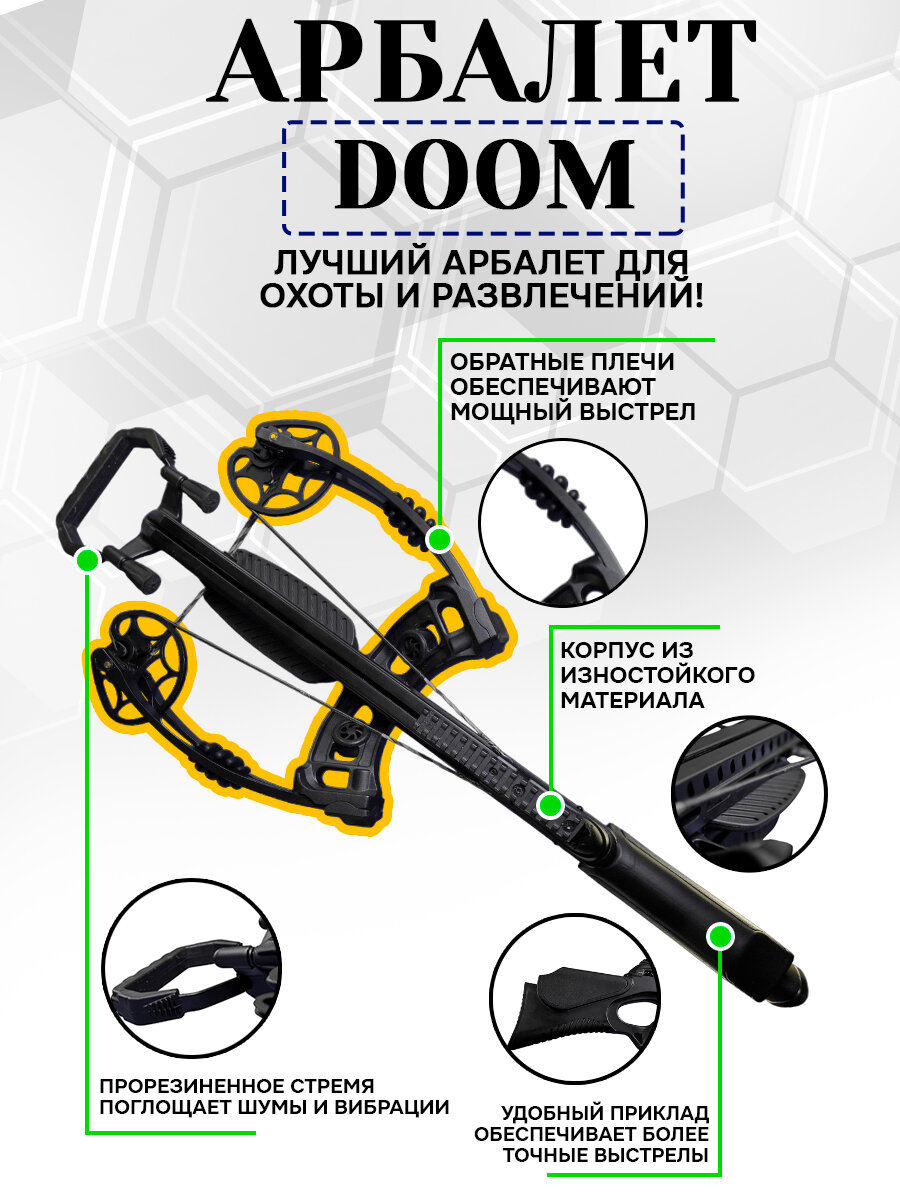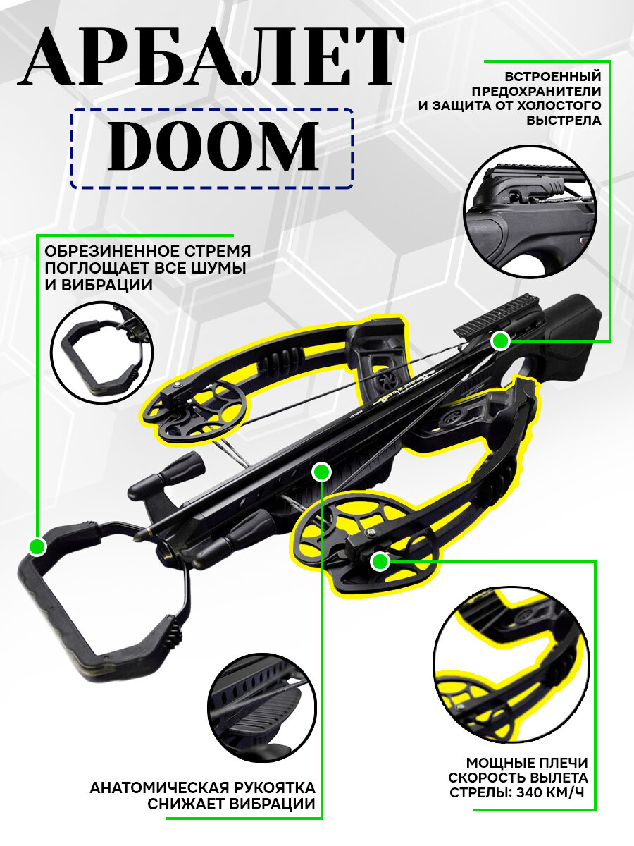 Блочный арбалет с обратными плечами Bearhunter DOOM Оптический прицел 3х32. Натяжитель. Стрелы карбон 20" 3 Шт. Кивер. Стремя обрезиненное. Воск. Ключи интересное: