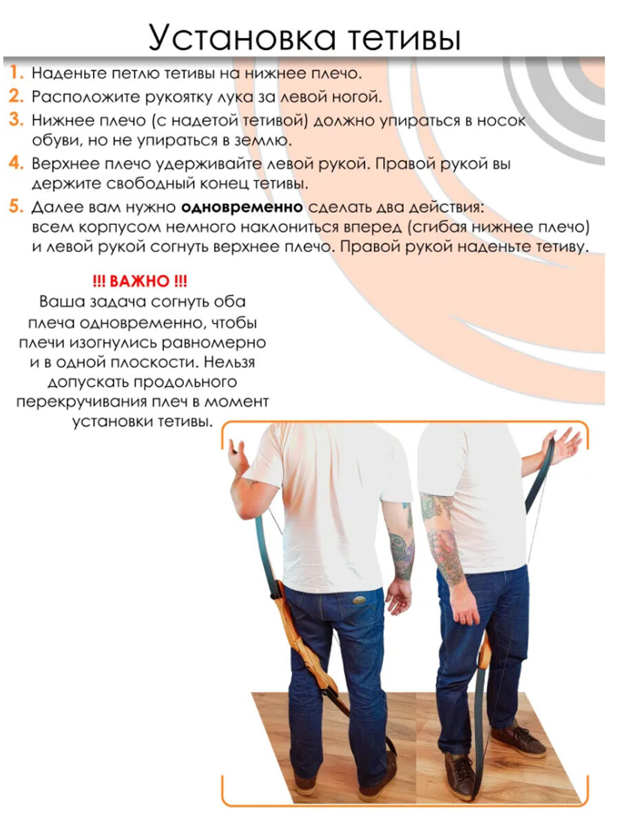 | Подробная комплектация | Плечи, рукоятка, тетива, крепежные болты и полочка. |