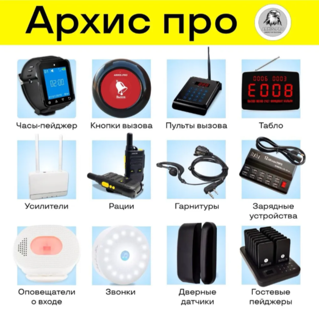 Кнопка вызова администратора, часы официанта, беспроводной комплект вызова персонала.