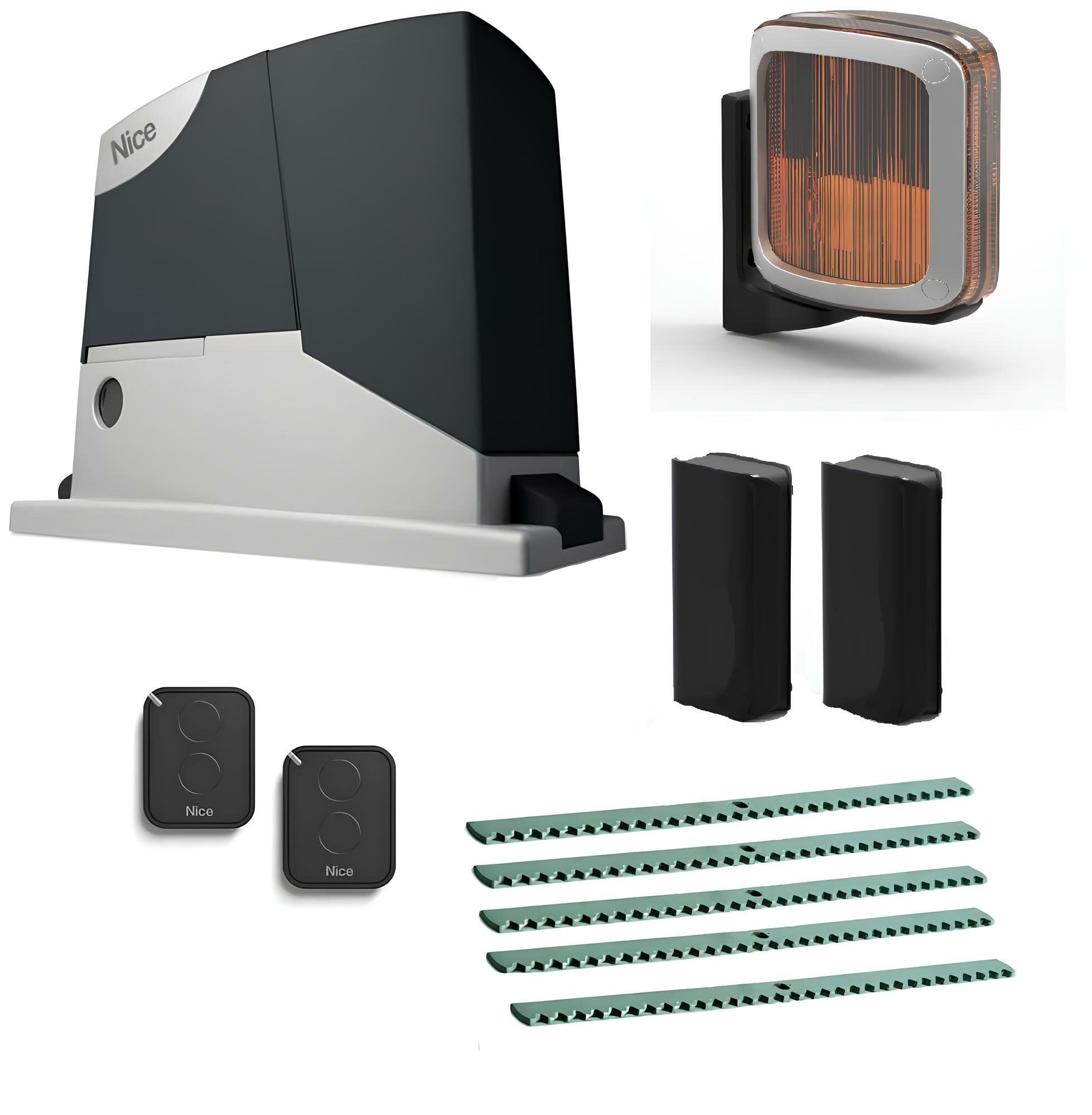 Автоматика для откатных ворот NICE RD400KITFULL5-K, комплект: привод, 2 пульта, фотоэлементы, лампа, 5 реек