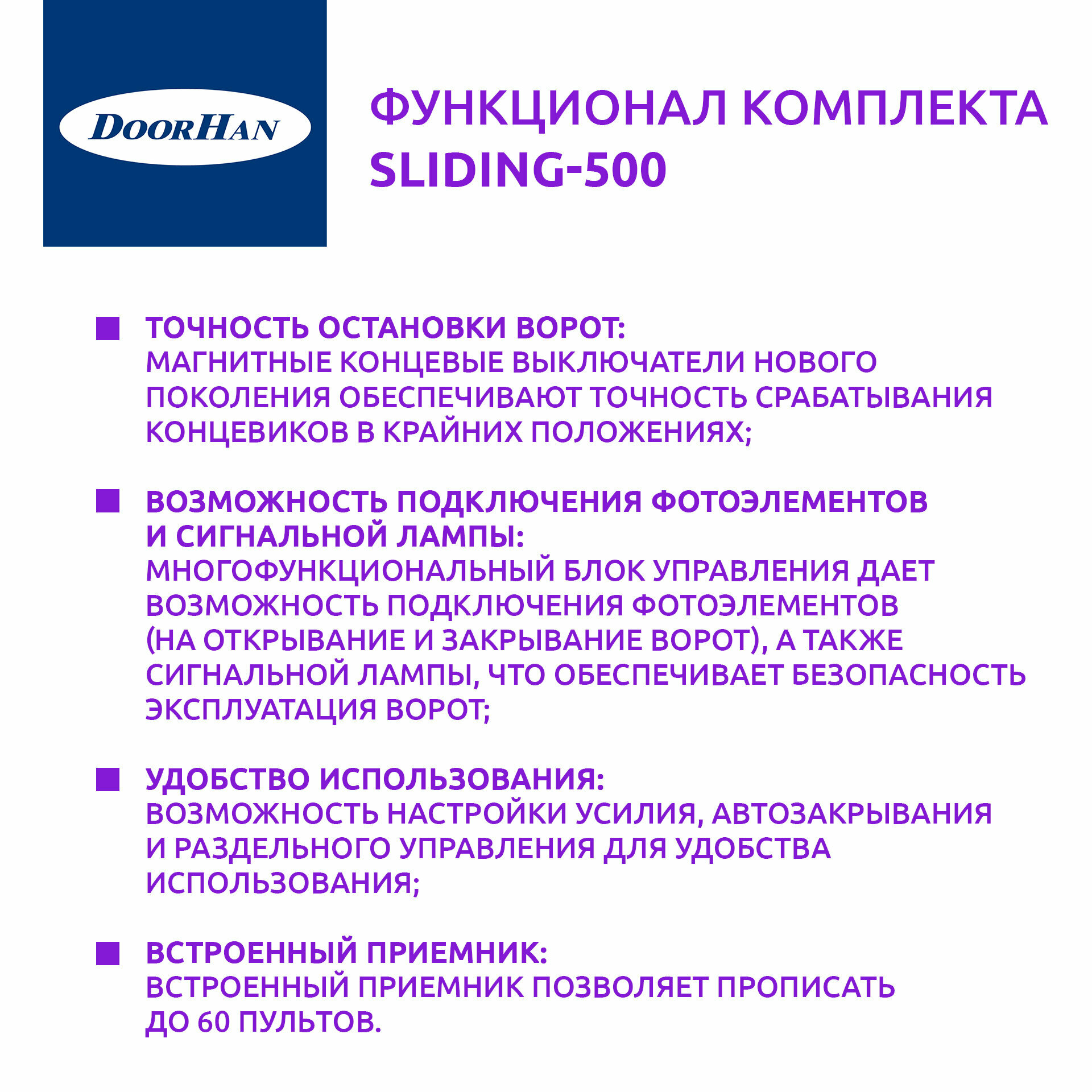 Автоматика для откатных ворот DoorHan SLIDING-500 интересное: