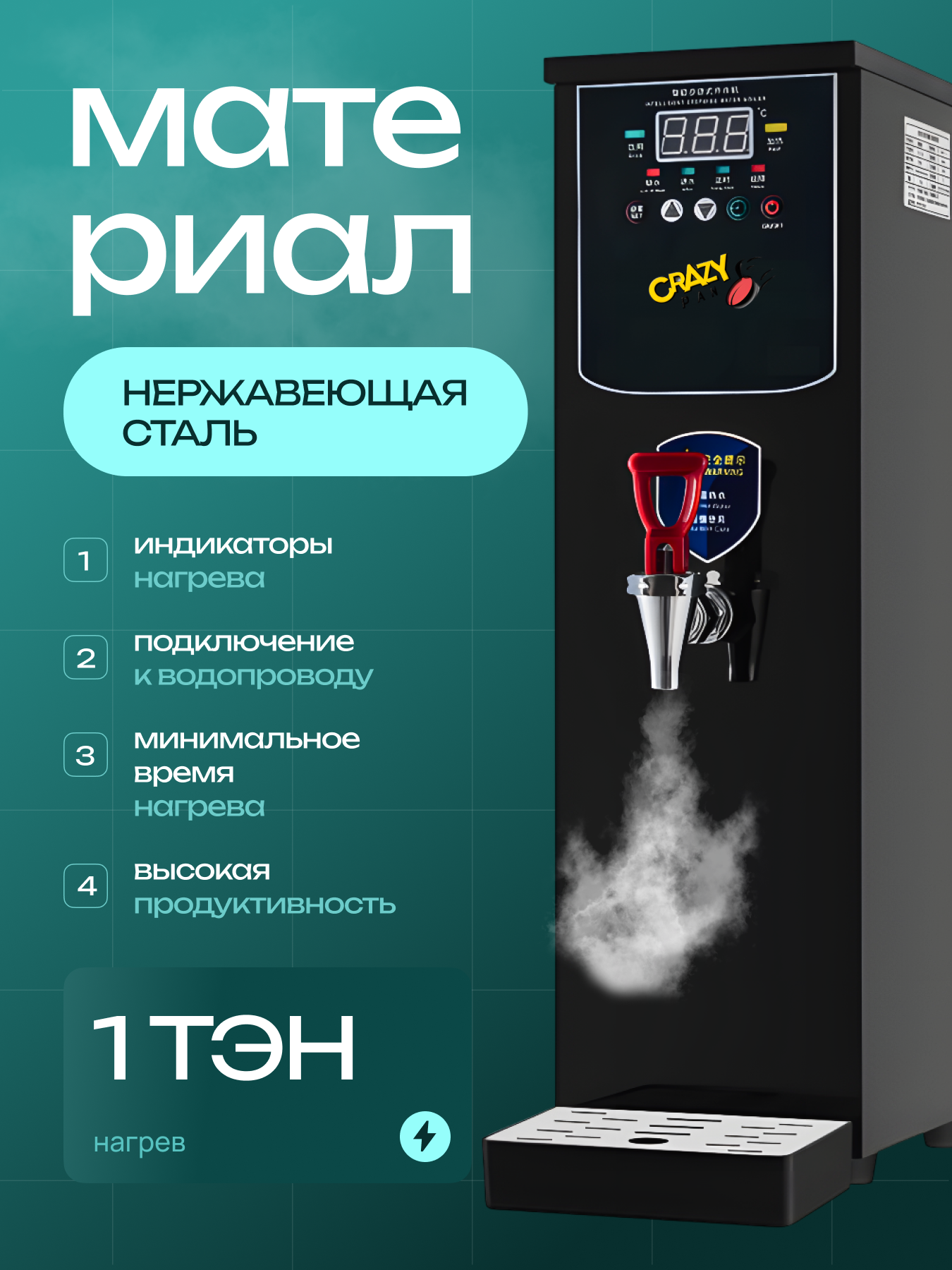 Электрокипятильник проточный Crazy Pan CP-IB22, 2,5 кВт, 22л/ч, таймер, объем бойлера 8 литров, черный интересное: