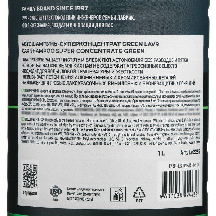СохранитьАвтошампунь LAVR Green концентрат 1 000 мл интересное: