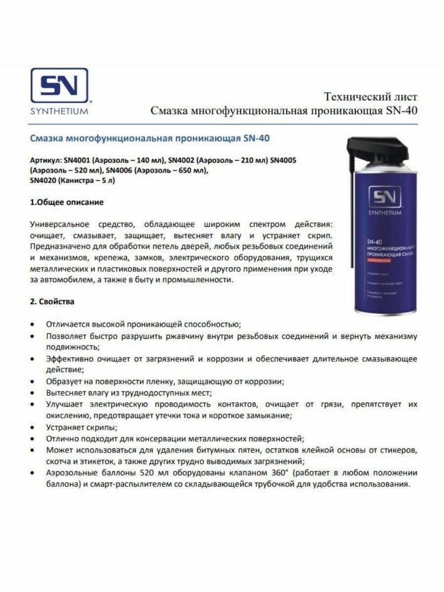 Многофункциональная проникающая смазка SYNTHETIUM 520 мл SN4005