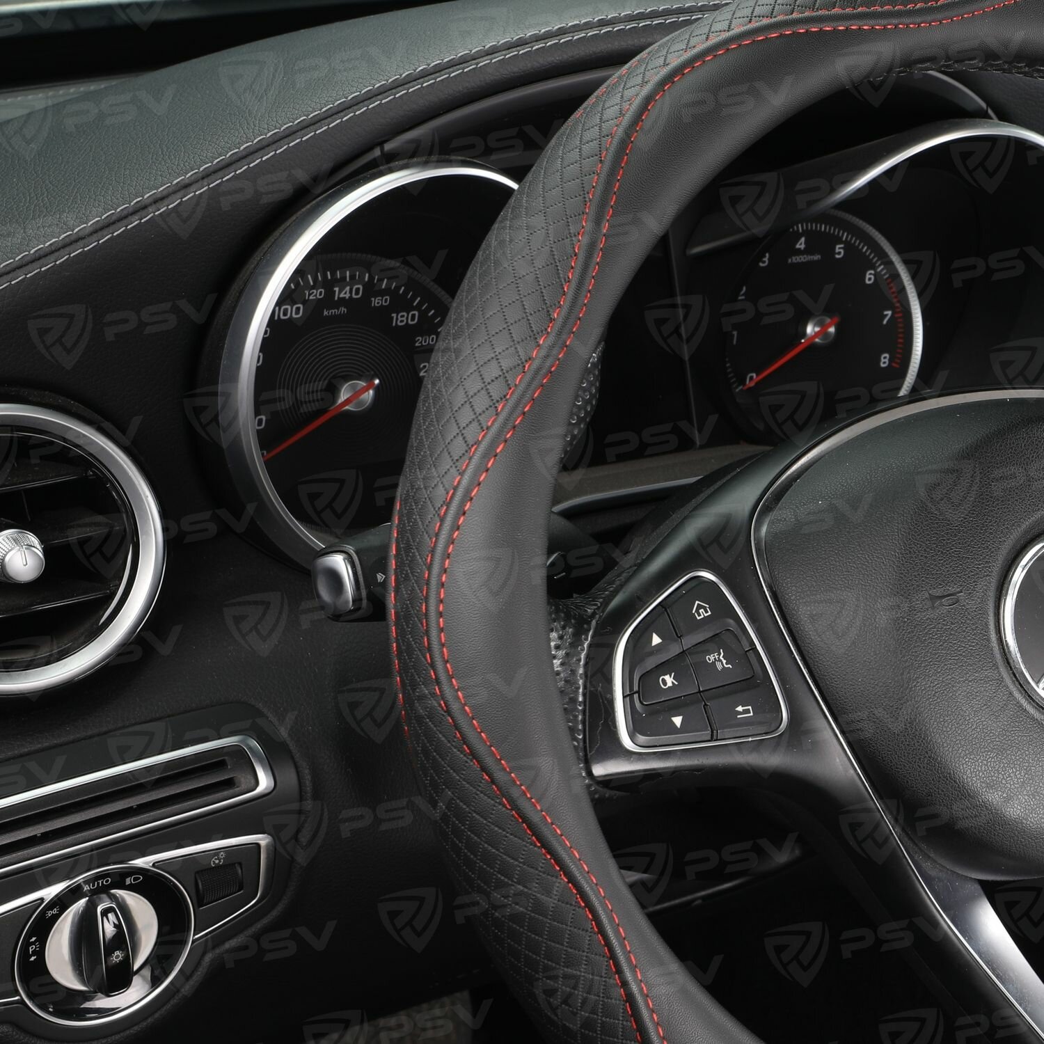 Оплетка чехол на руль PSV ILLUSION (Черно-красная) M 37-39 см, экокожа, 136845