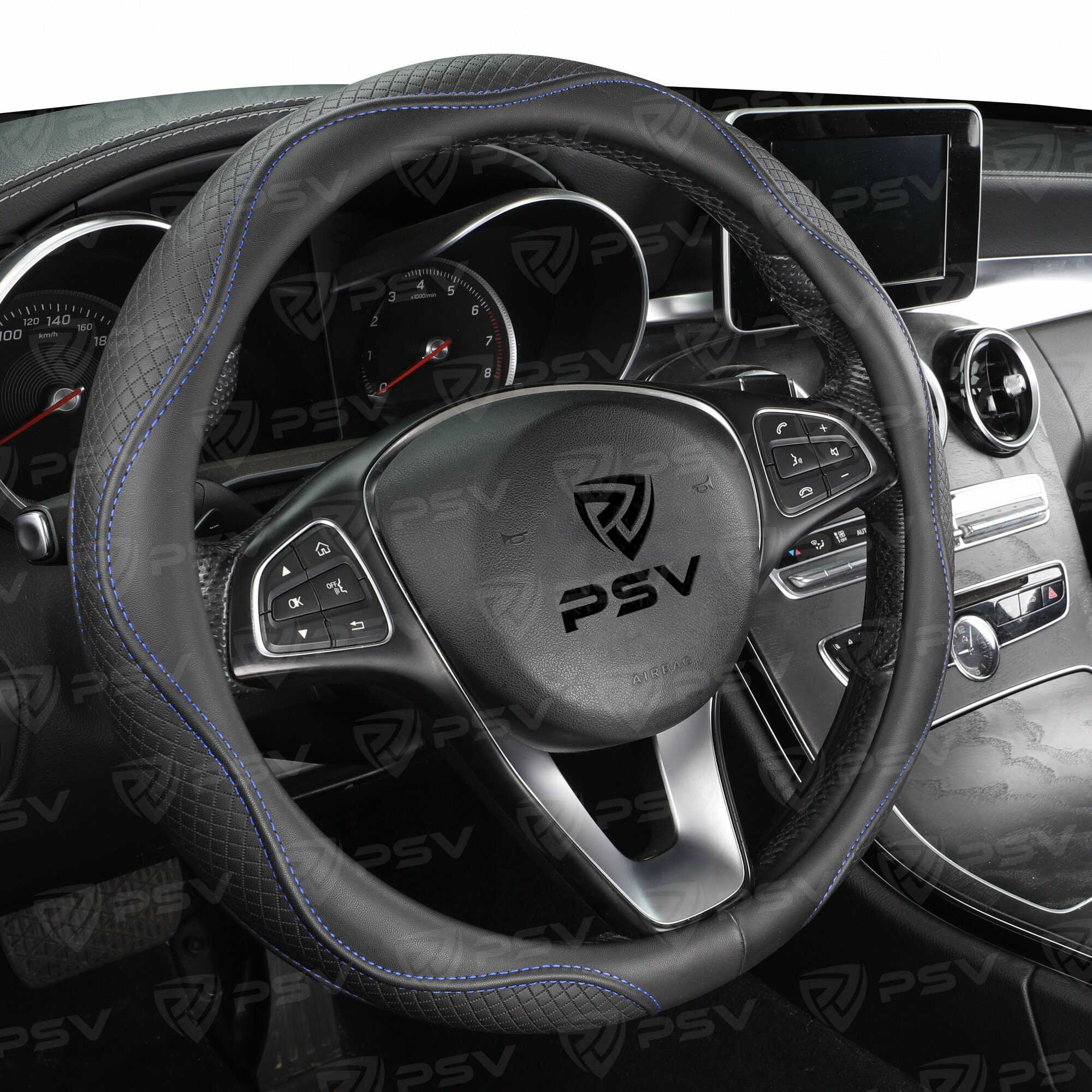 Оплетка чехол на руль PSV ILLUSION (Черный/Отстрочка синяя) M 37-39 см, экокожа, 136846