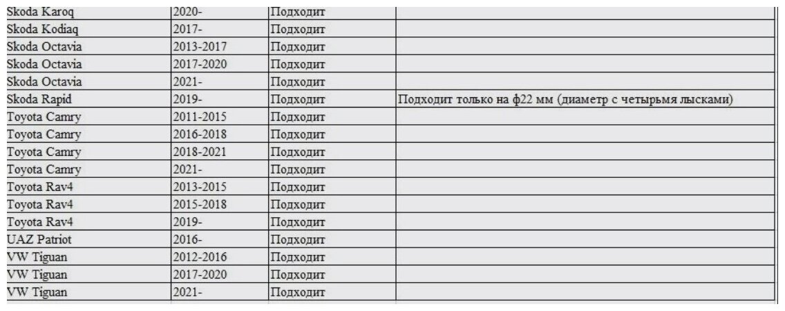 | Марка автомобиля | Chery / Chevrolet / Geely / Haval / Hyundai / KIA / LADA (ВАЗ) / Mazda / Mitsubishi / Nissan / Renault / Skoda / Toyota / Volkswagen / УАЗ |