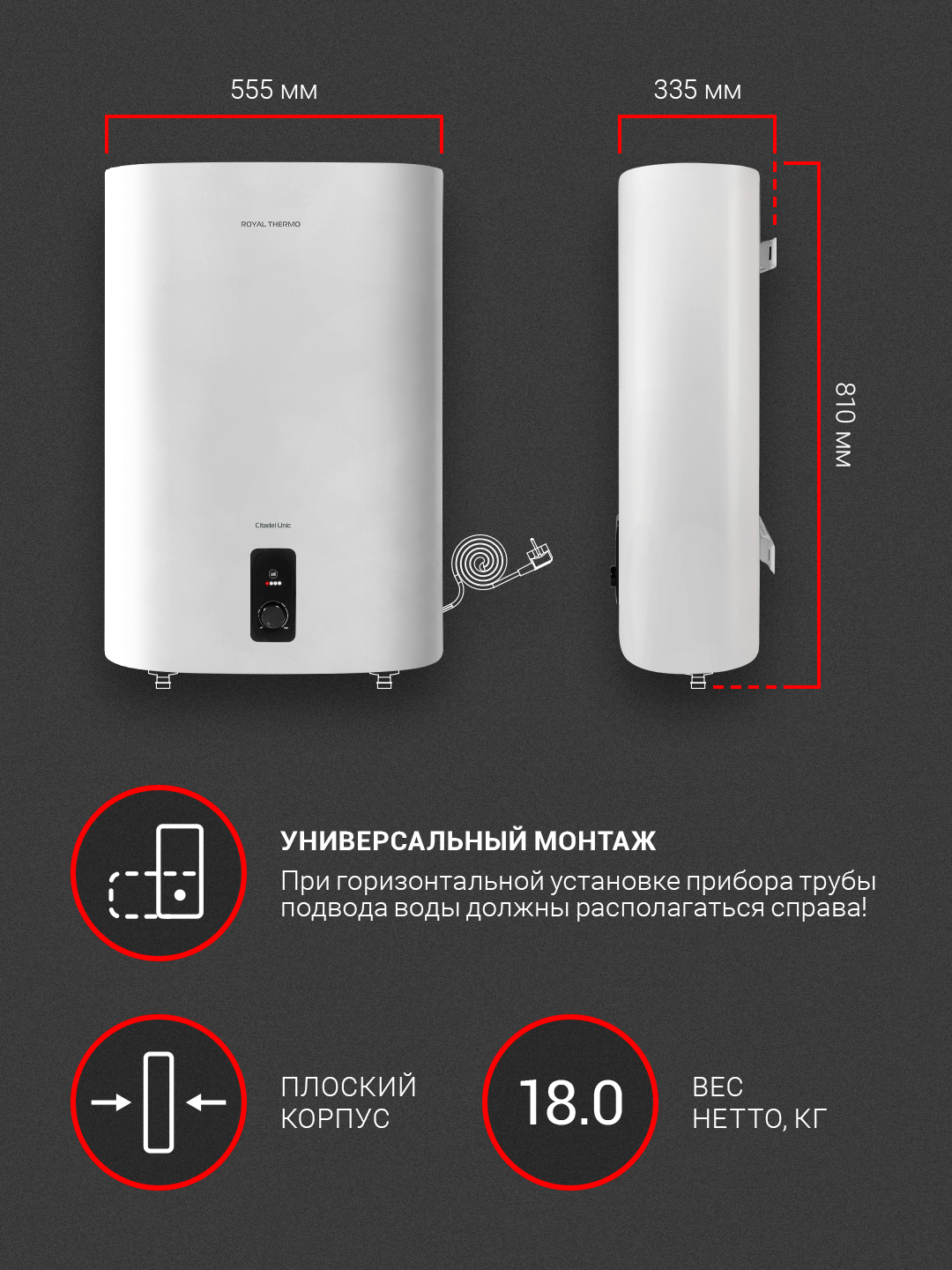 СохранитьВодонагреватель накопительный Royal Thermo RWH 80 литров Citadel Unic интересное: