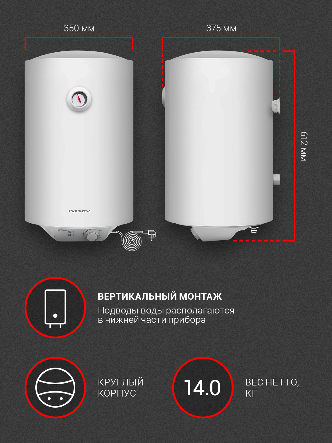 СохранитьВодонагреватель накопительный Royal Thermo RWH 30 литров DRYver интересное: