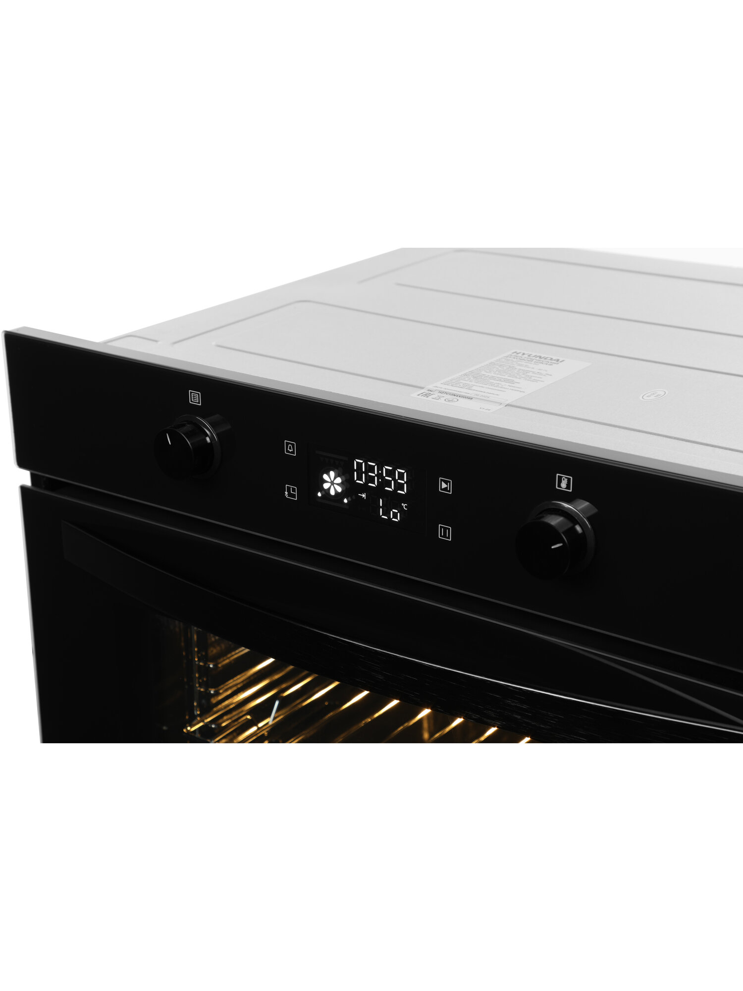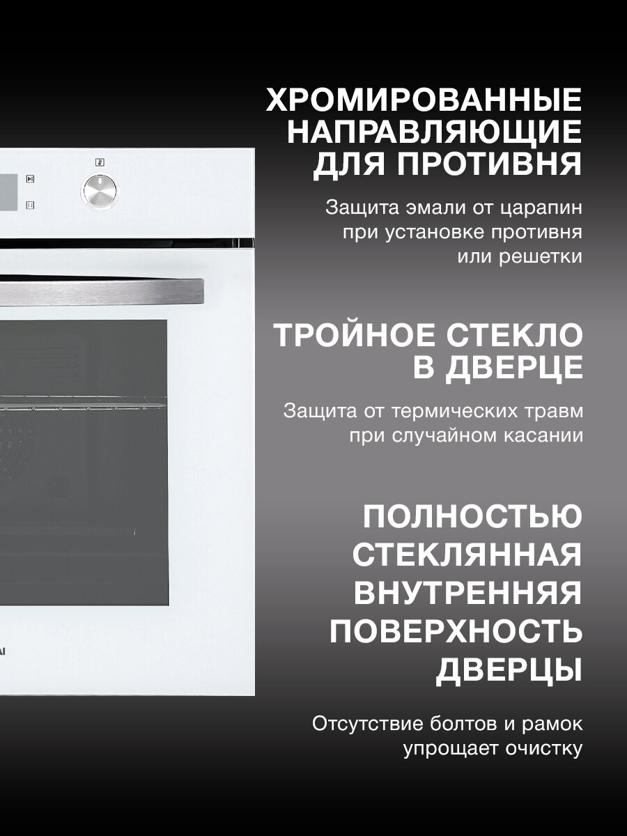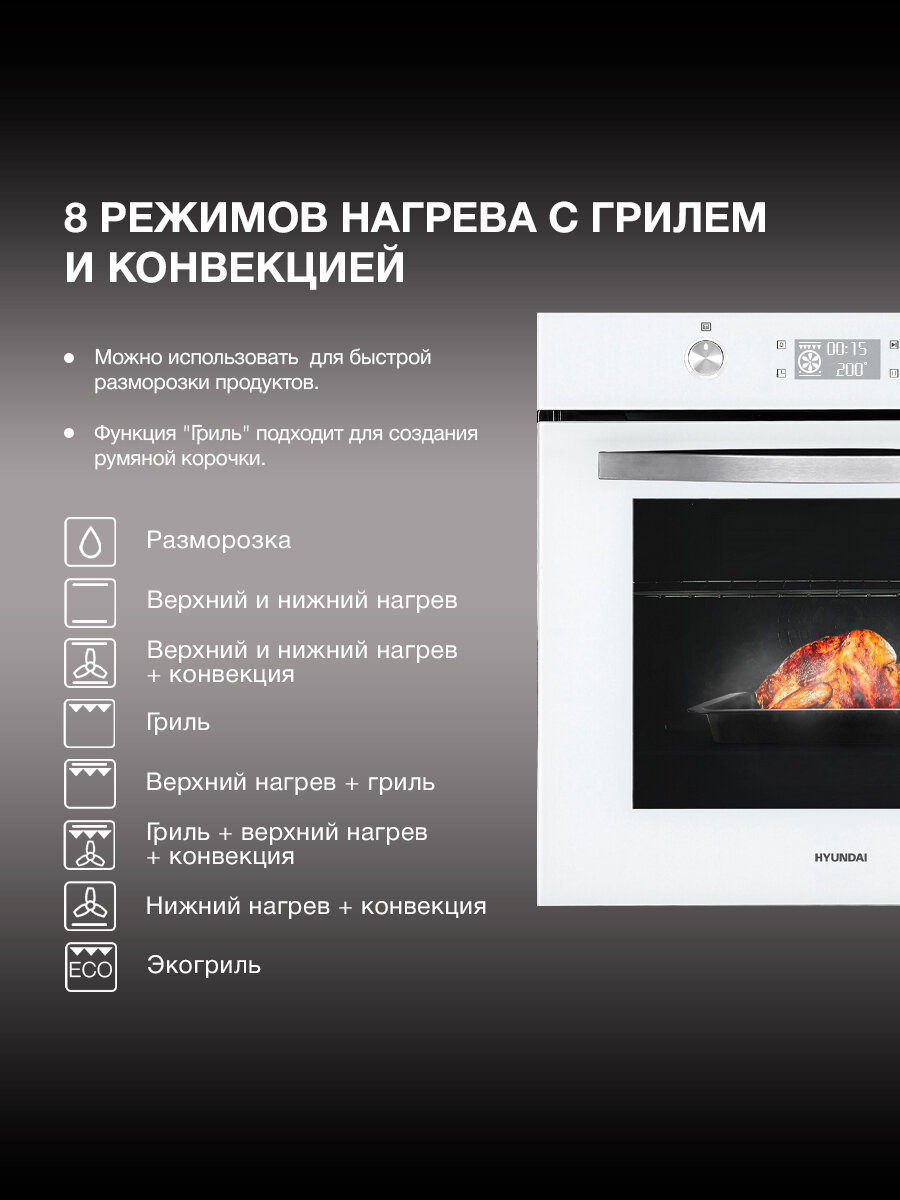 Духовой шкаф Электрический Hyundai 6009.25 WG, 8 режимов, дисплей, гриль + конвекция, 64л, эмаль легкой очистки белое стекло