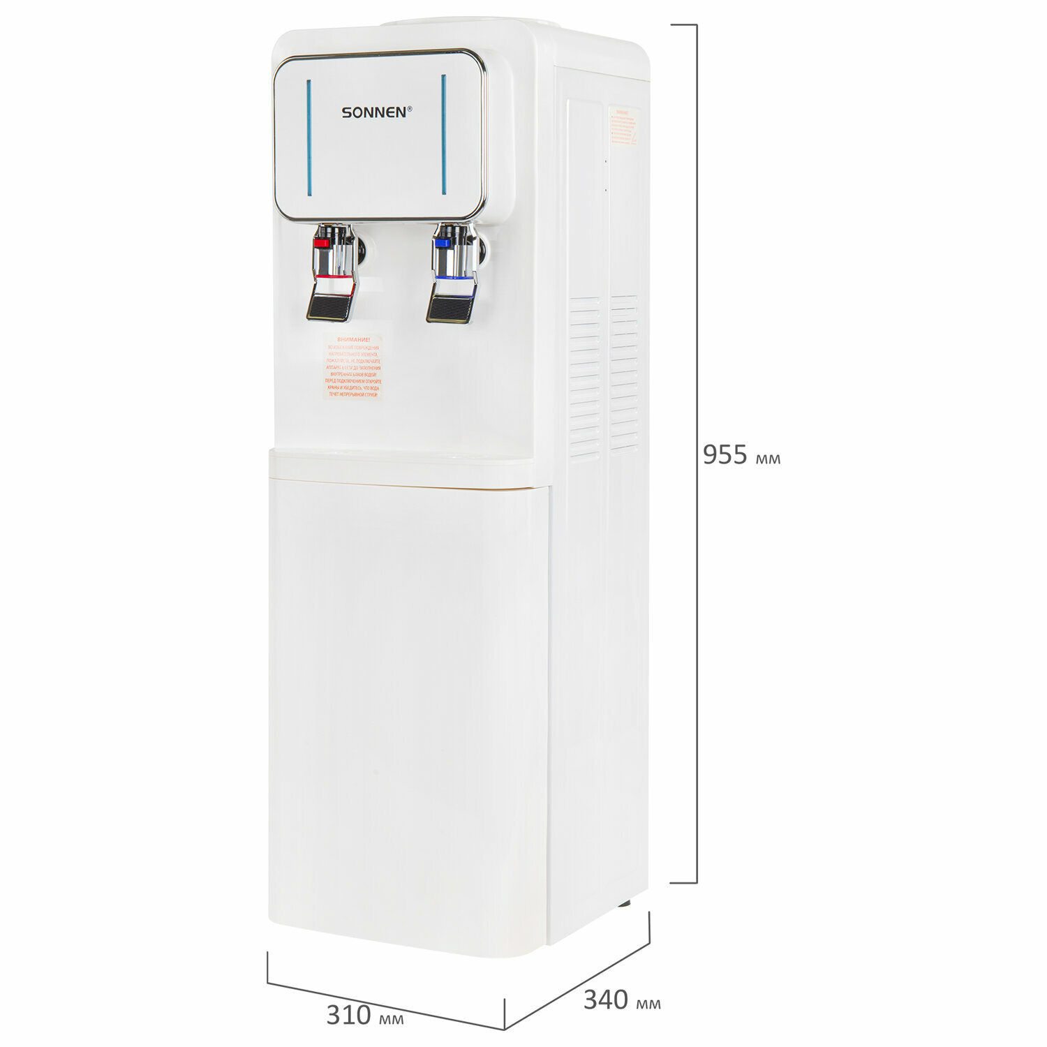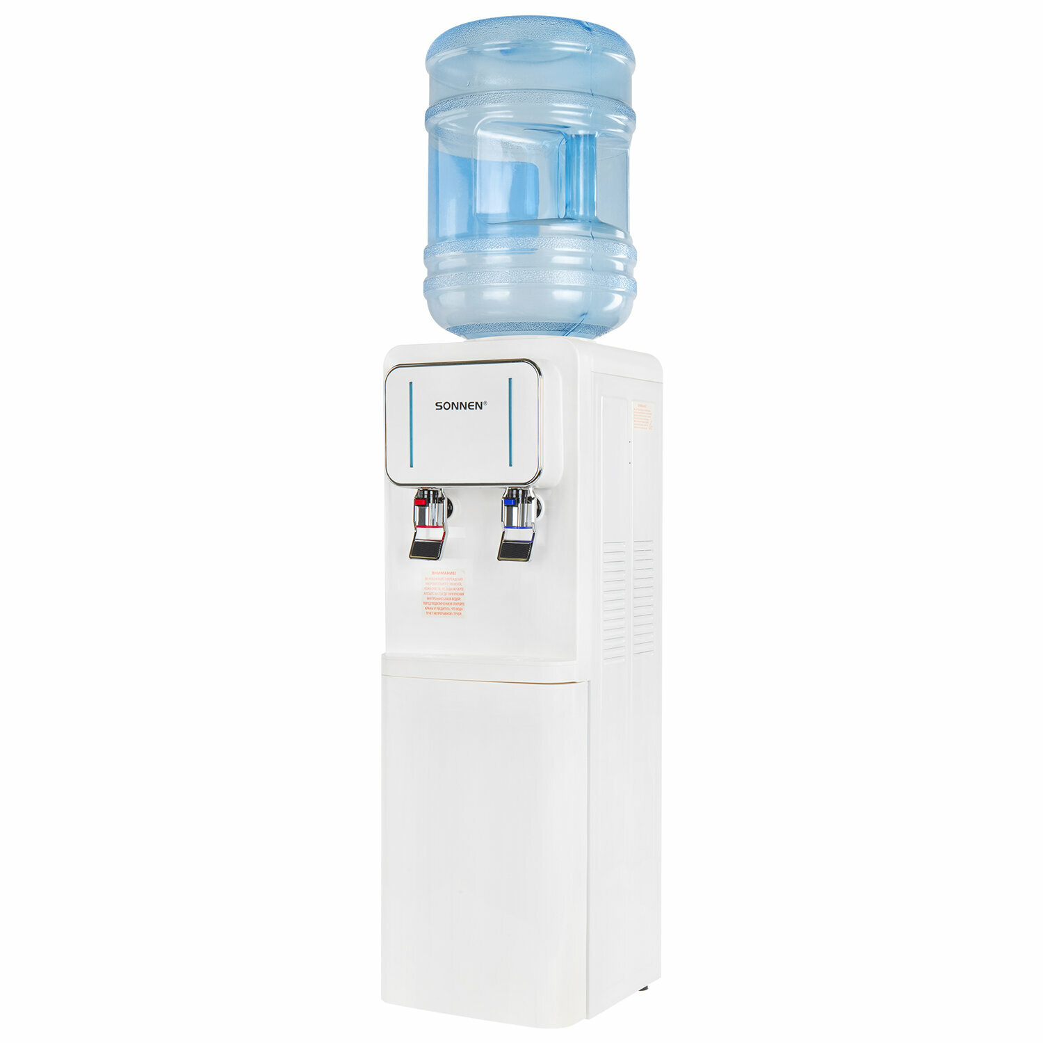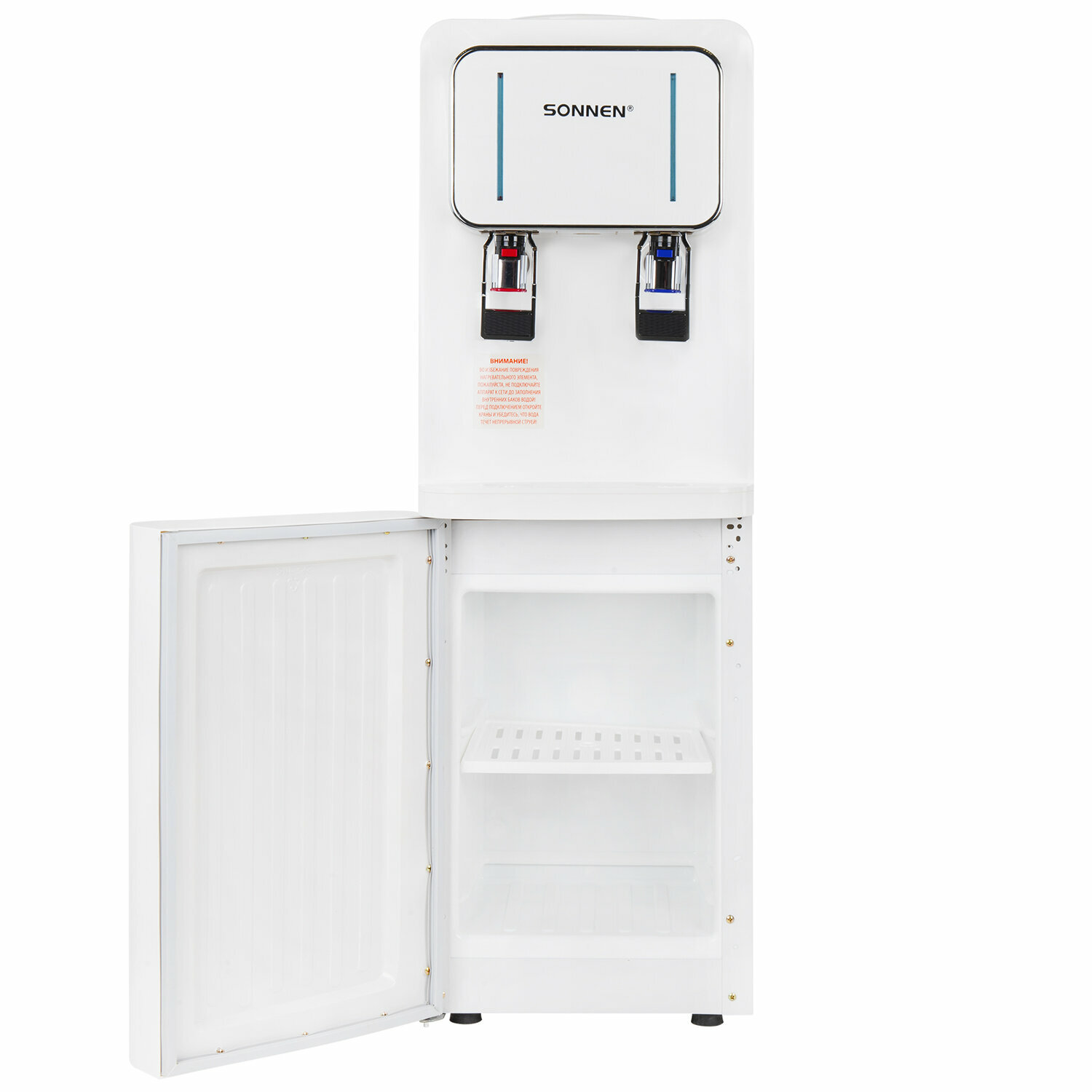 Кулер для воды SONNEN FSE-02Wc, напольный, нагрев/охлаждение электронное, шкаф, 2 крана, белый, 456167, в комплекте 1шт
