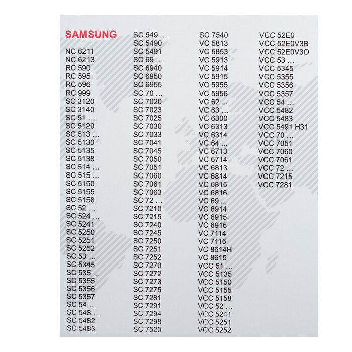| Производитель совместимого пылесоса | AEG, Akai, Gorenje, Lentel, Midea, SUPRA, Samsung, Saturn, Scarlett, Siemens, Ufesa, VIGOR, VITEK, Vax, Фея |