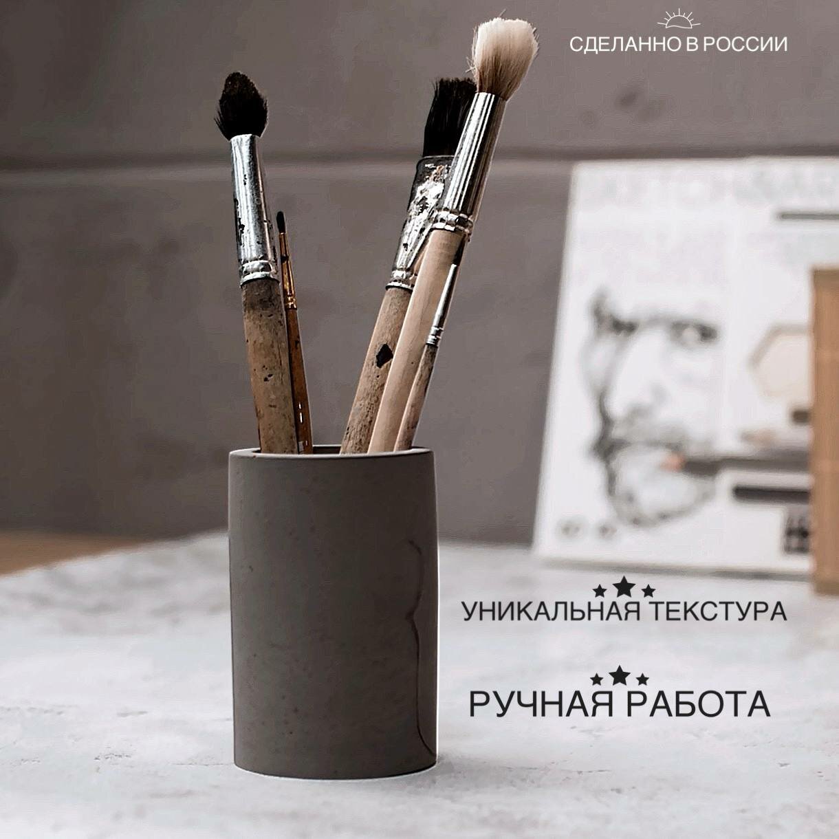 Органайзер ZEMLYANKA для хранения канцелярии. Подставка для канцтоваров для офиса. Стакан для ручек и карандашей бетонный. Контейнер маркеров и кистей..
