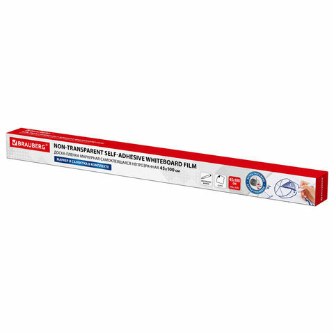 Доска-пленка маркерная самоклеящаяся в рулоне, БЕЛАЯ, 45х100см, маркер и салфетка, BRAUBERG, 237834