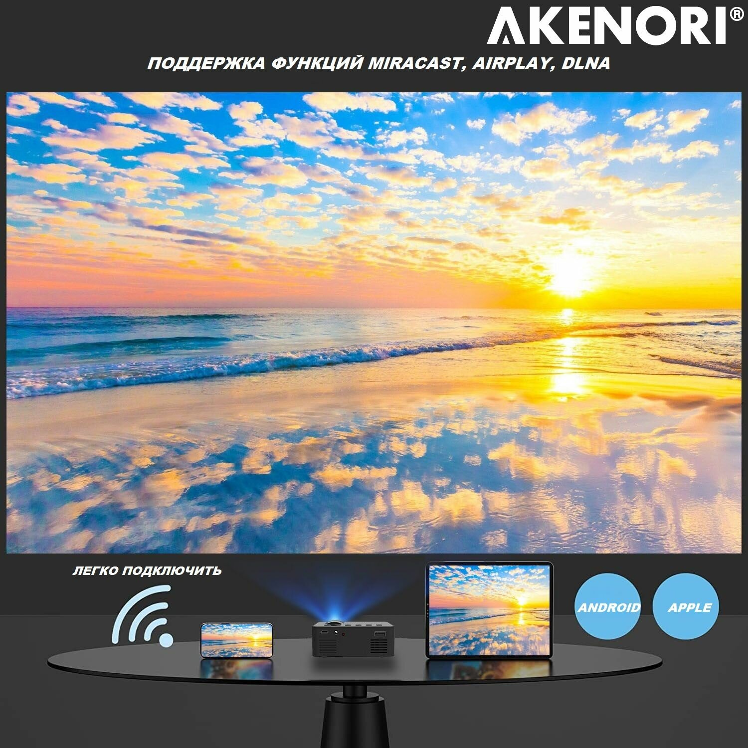 Проектор для фильмов Akenori Wi-Fi портативный переносной мини проектор