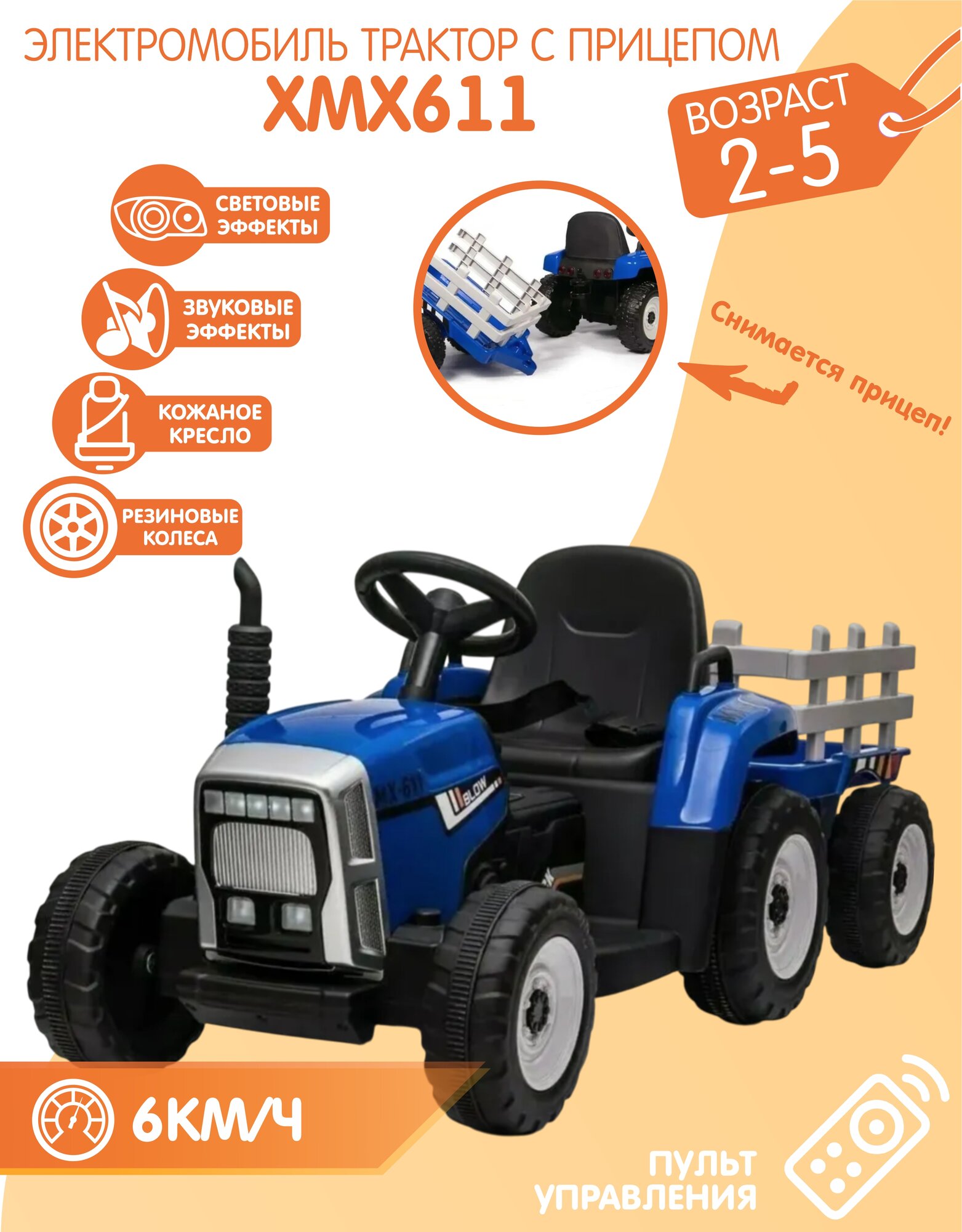 Электромобиль Трактор XMX611 с прицепом (Синий) + музыка BLUETOOTH интересное: