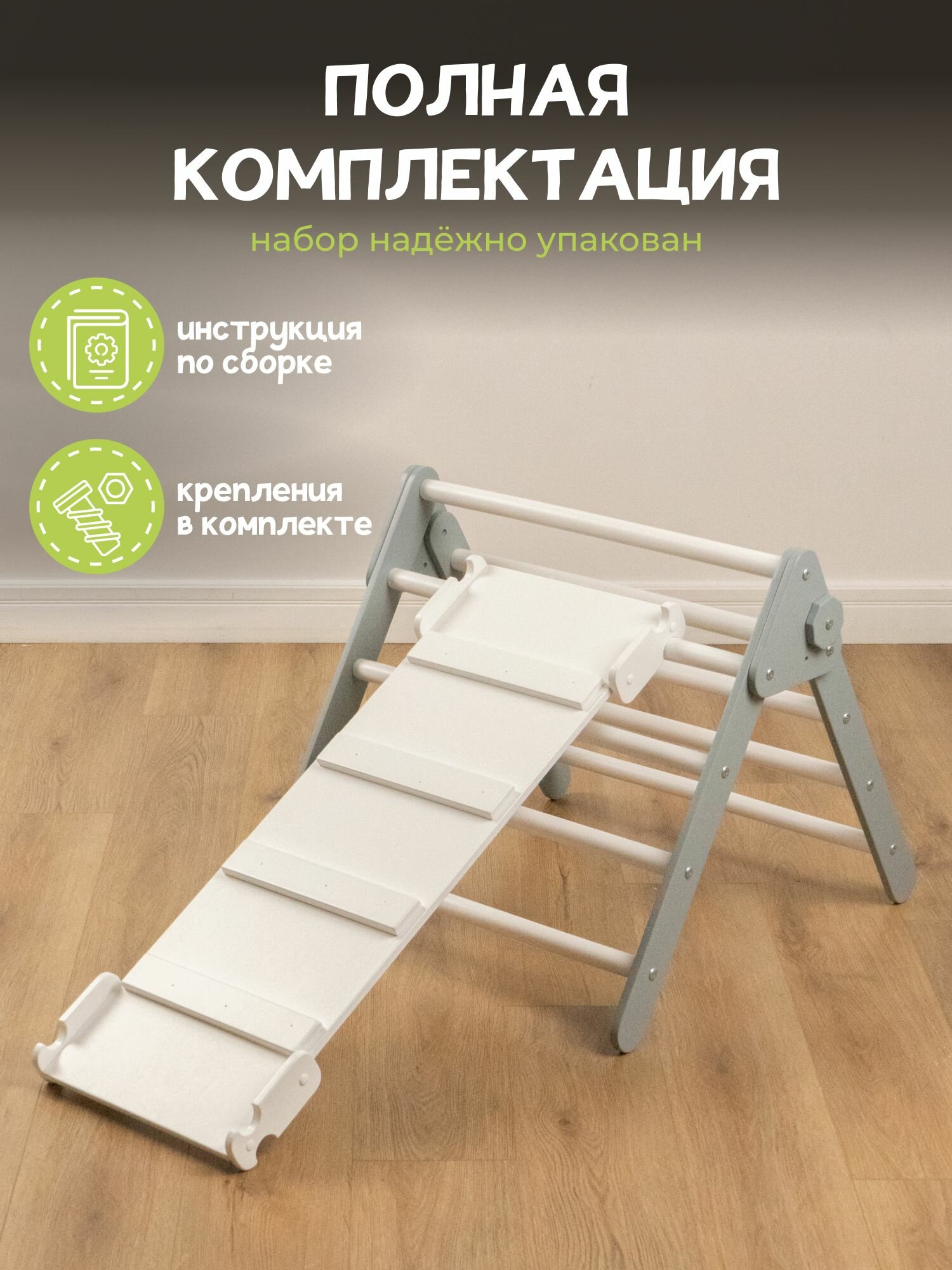 СохранитьКомплект треугольник Пиклер Мини серый + белый + горка "Лесенка" белая PAPPADO интересное: