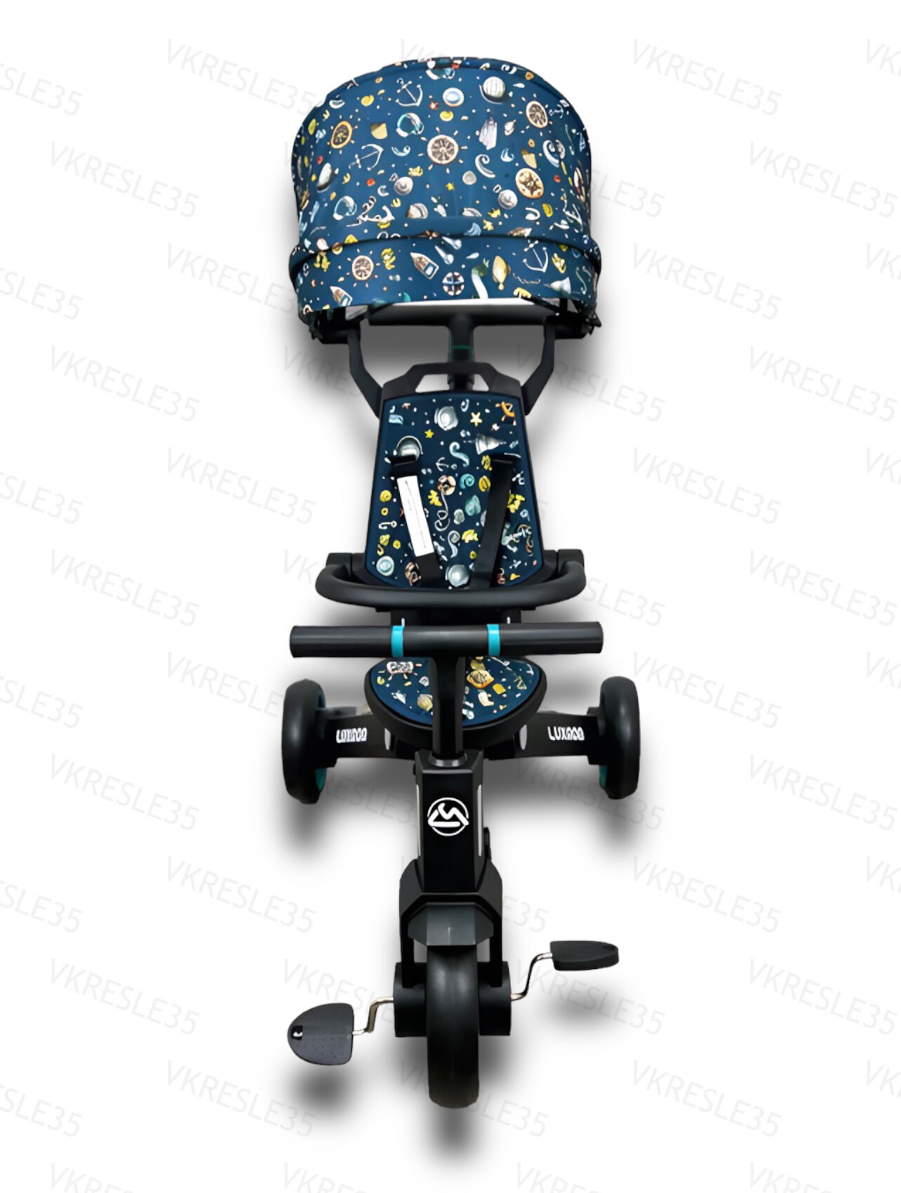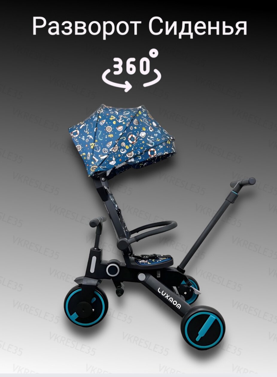 Детский трехколесный велосипед, Luxmom, с музыкальной панелью ,поворот сиденья 360,цвет синий