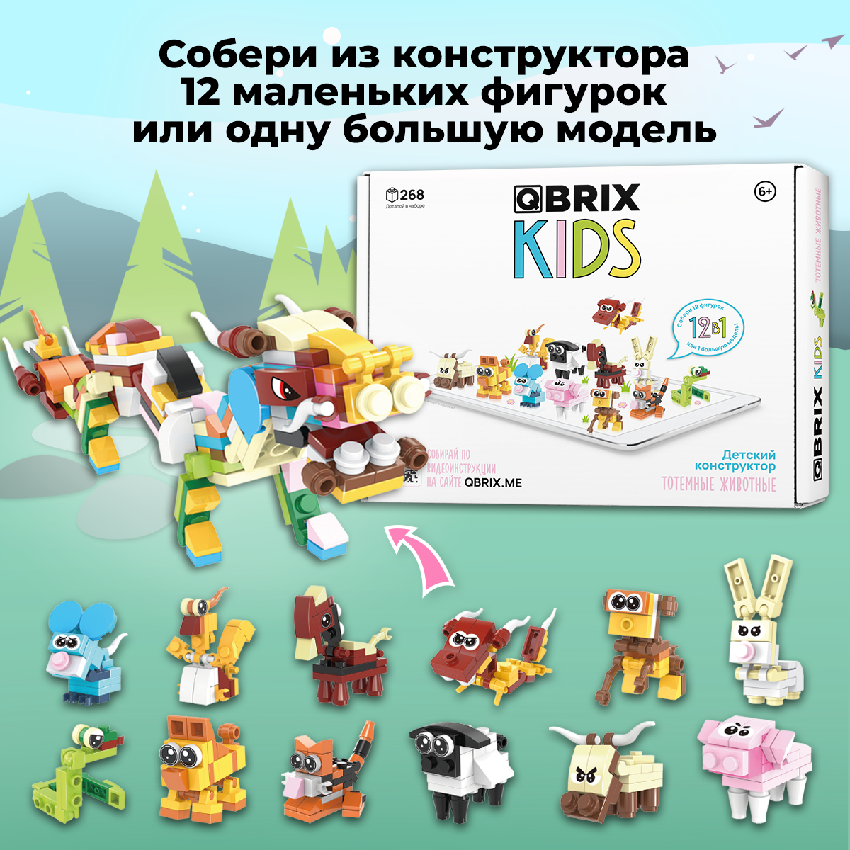 Купить Конструктор QBRIX KIDS Тотемные животные (совместим с лего/lego, пластиковый, развивающий, для мальчиков, для девочек, животные)