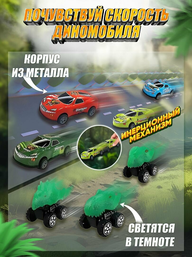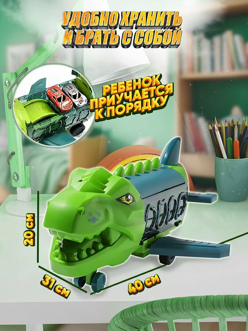 Самолет игрушка грузовой Play Okay динозавр с гоночными машинками, трек и парковка, зеленый интересное: