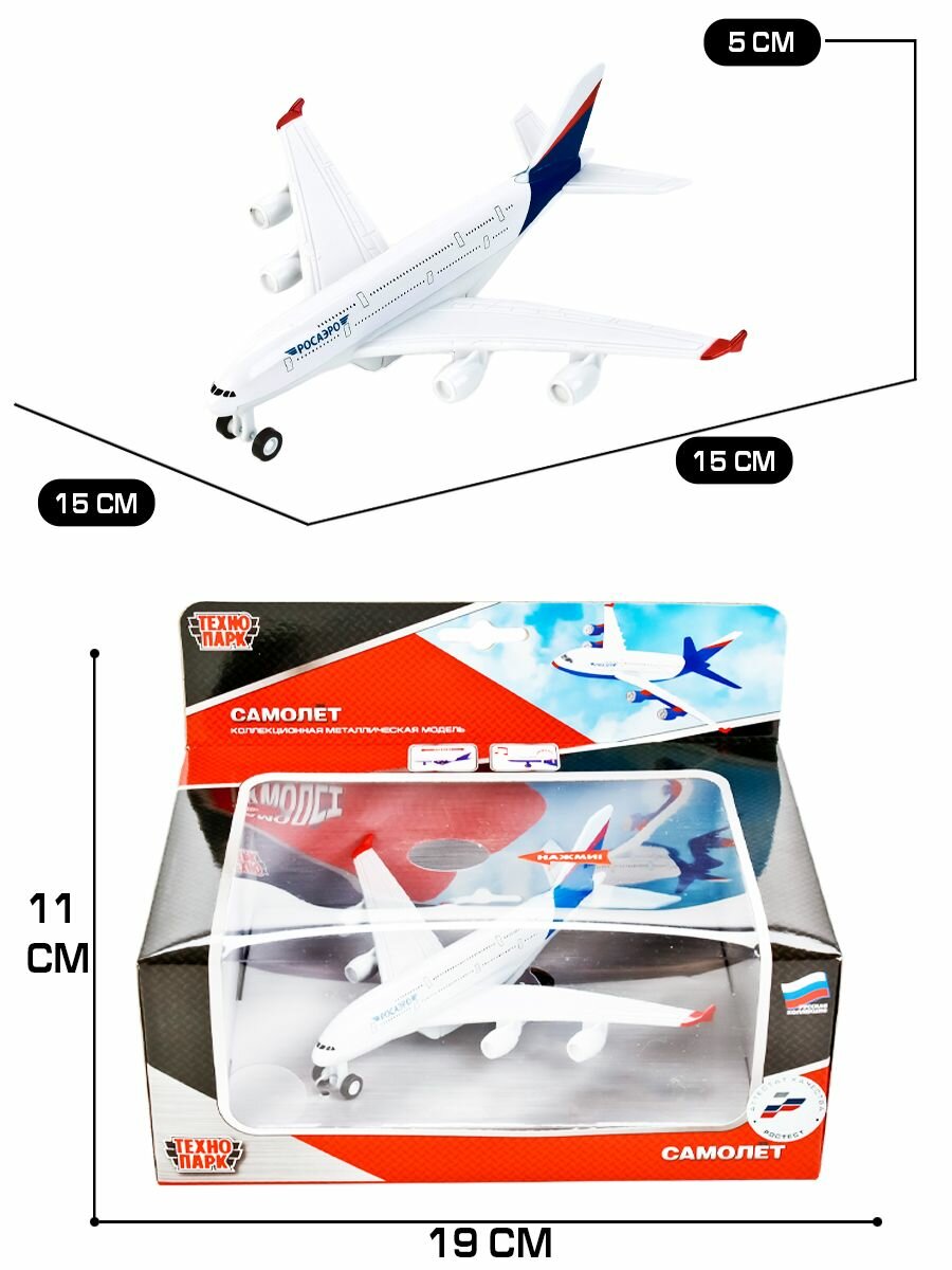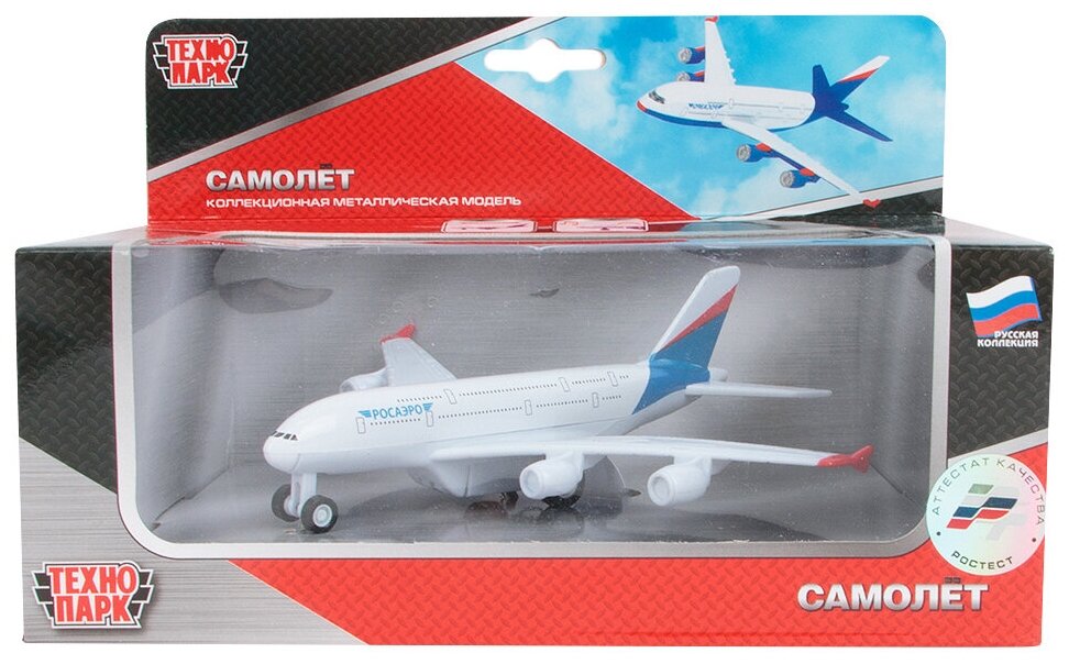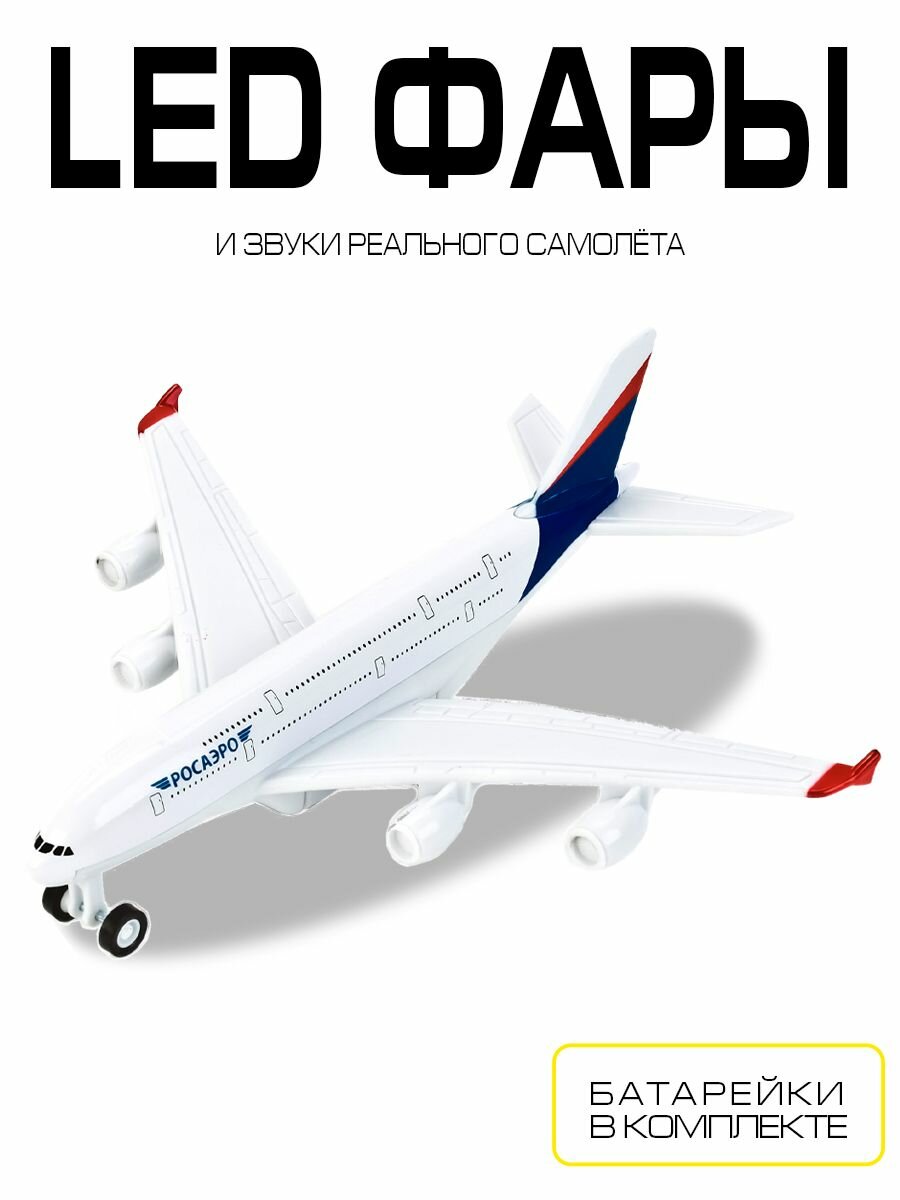Самолет Технопарк Росаэро, белый, инерционный, свет, звук 857787-R