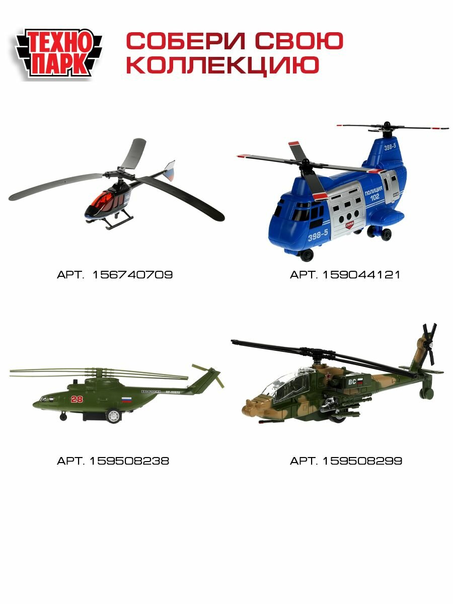 Модель Инерционная Технопарк Армия России. Военно-транспортный вертолет (20см, металл, свет, звук, люк, подвижные детали, зеленый, в коробке) COPTER-20SLARR-GN, (Shantou City Daxiang Plastic Toy Products Co., Ltd)