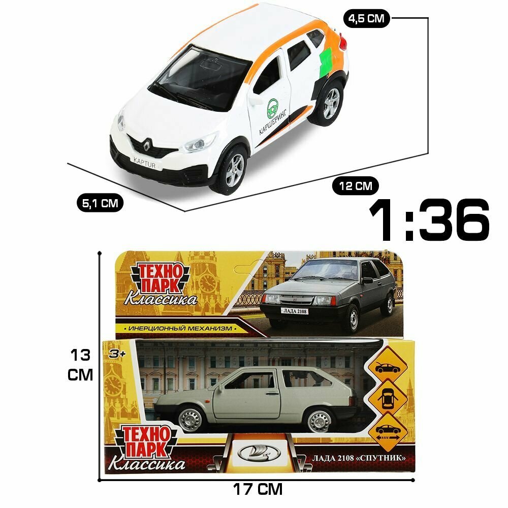 Купить Машинка детская Renault Kaptur Каршеринг 12 см, Технопарк, белая, открываются двери и багажник, металлический корпус