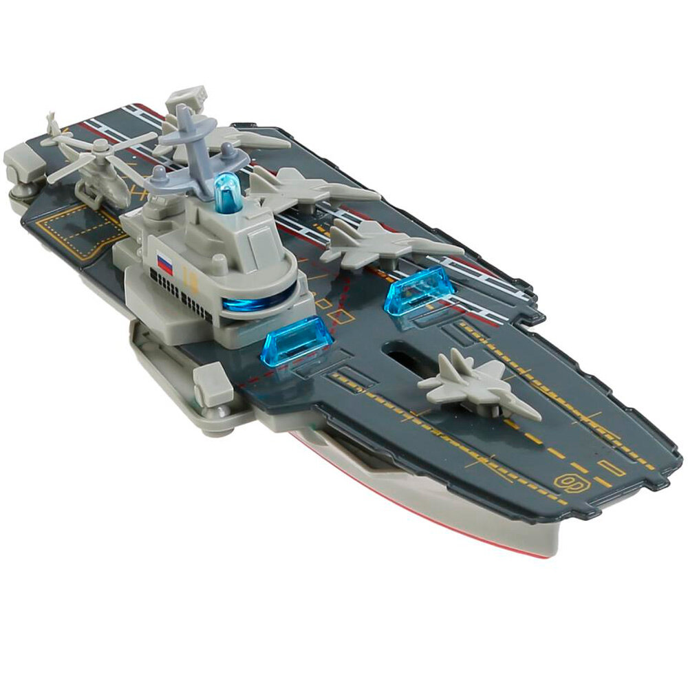 Машинка детская Корабль Авианосец 22 см, Технопарк, металлический корпус, свет и звук