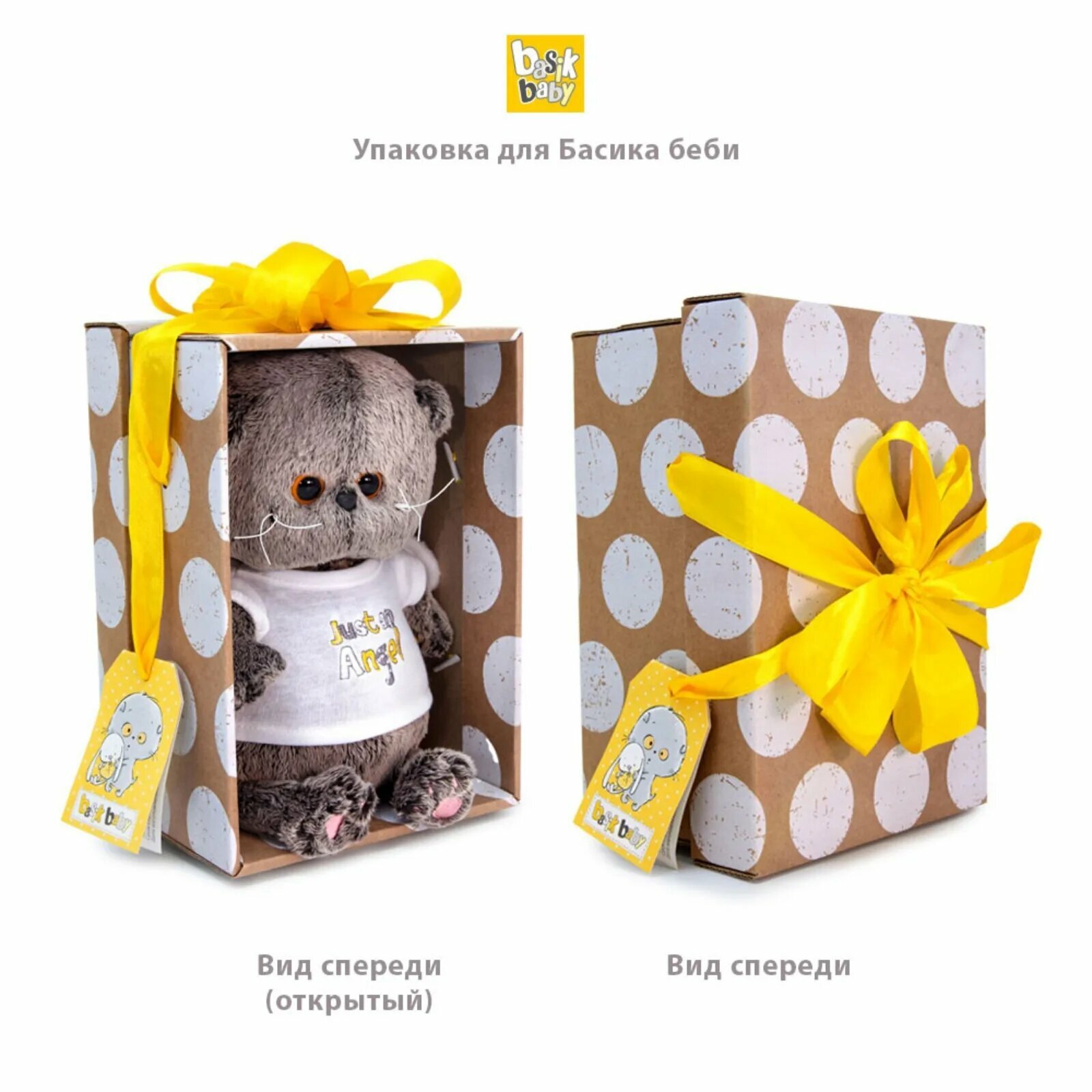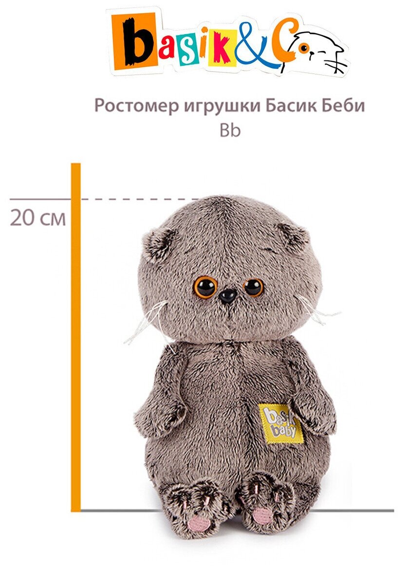 Budi Basa Мягкая Игрушка Кот Басик BABY в комбинезоне с монстриком (20см, в подарочной коробке) BB-075, (ООО "МПП")