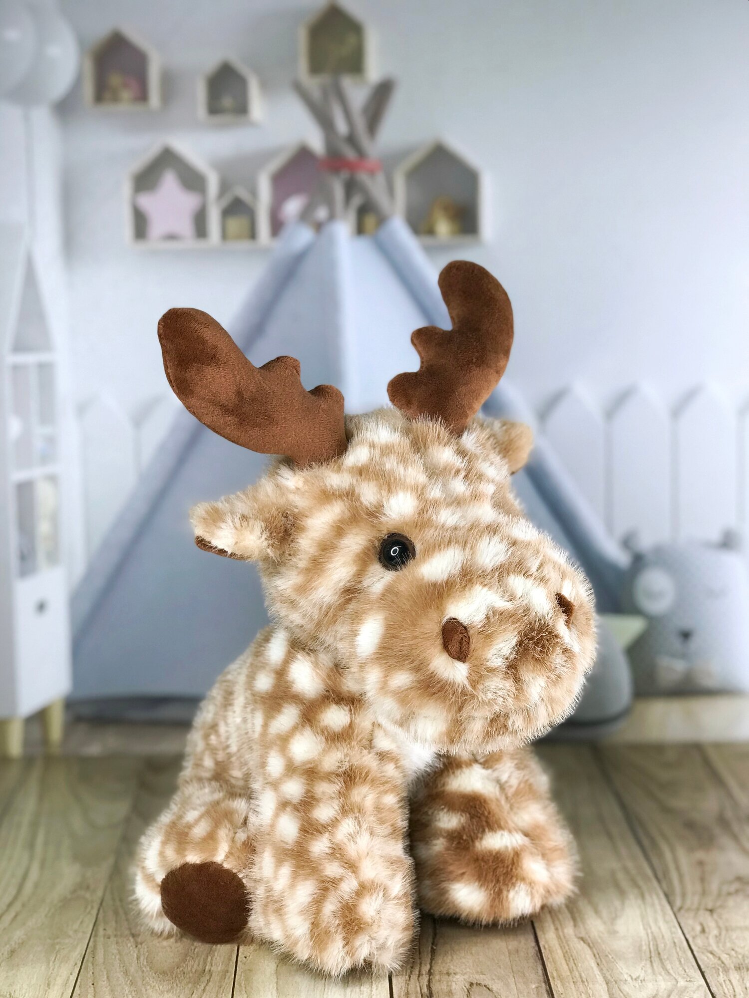 Мягкая игрушка Олень, Олененок светло-серый 22 см