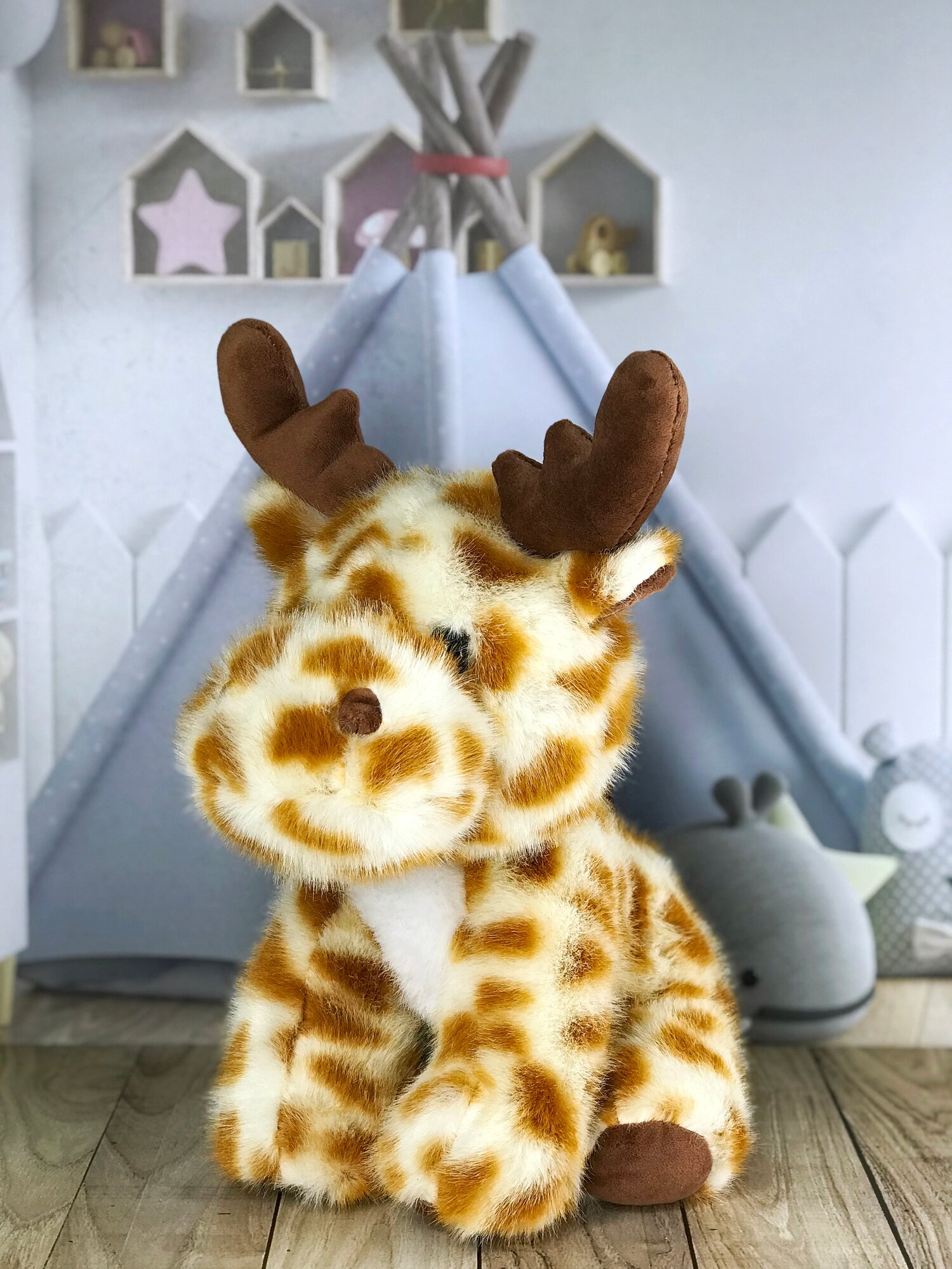 Мягкая игрушка Олень, Олененок светло-серый 22 см