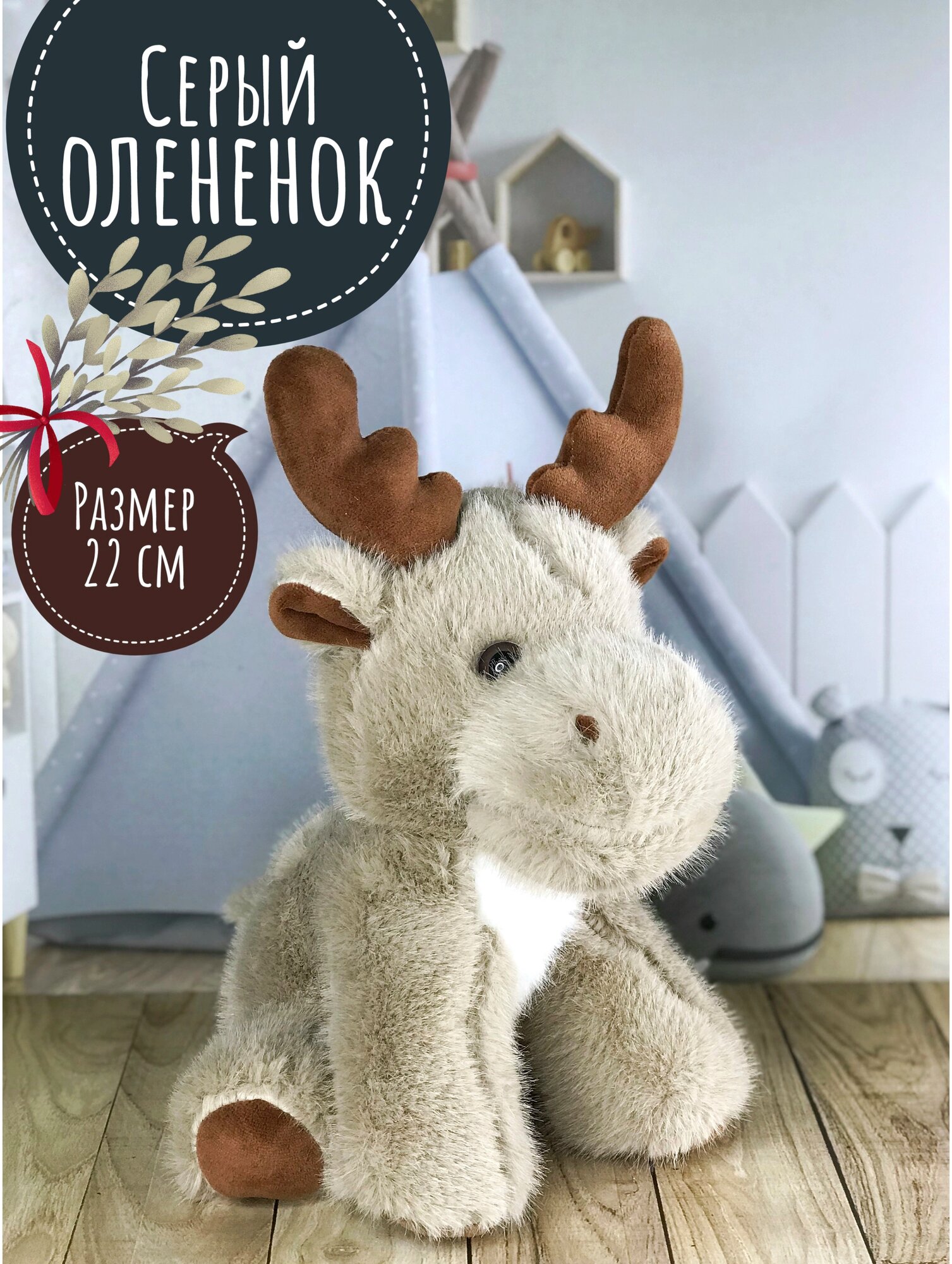 Купить Мягкая игрушка Олень, Олененок светло-серый 22 см