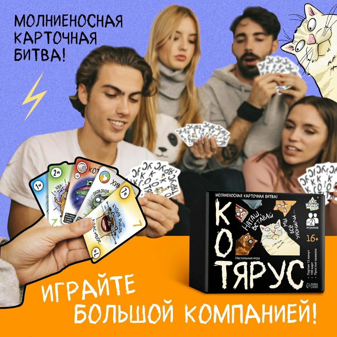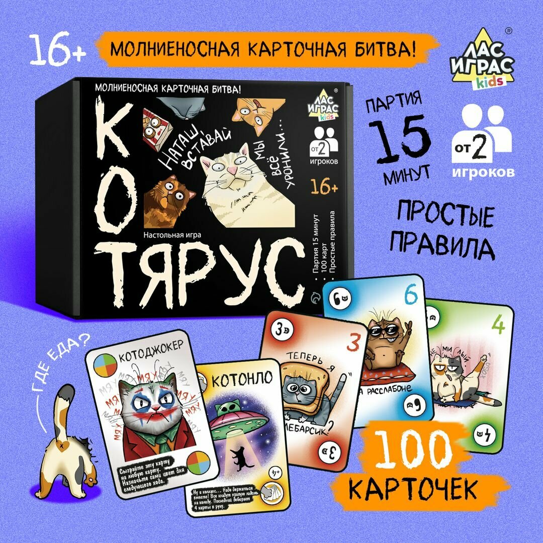 Купить Настольная игра "Котярус", от 2 игроков, 100 карт, 16+, Лас Играс KIDS