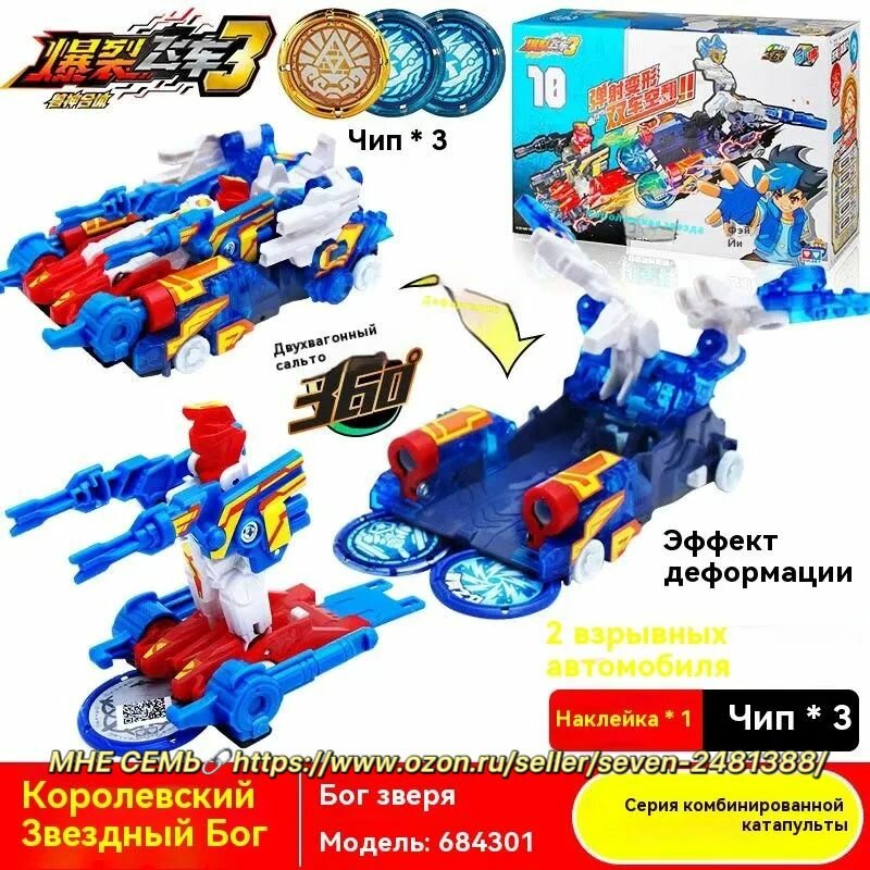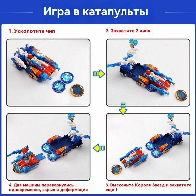 | Комплектация | - 2 машинки-трансформера (12х9х8 и 10х9х6см); - 2 съемных детали; - 3 трансформационных диска (4 см); - наклейки; - инструкция. |