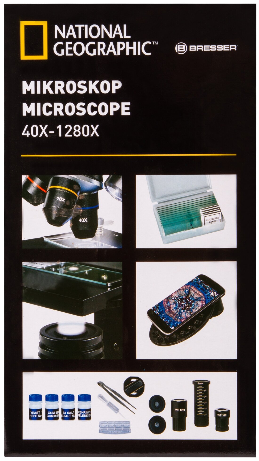 Купить Микроскоп Bresser National Geographic 40x-1280x с держателем для смартфона, детский, с набором для опытов