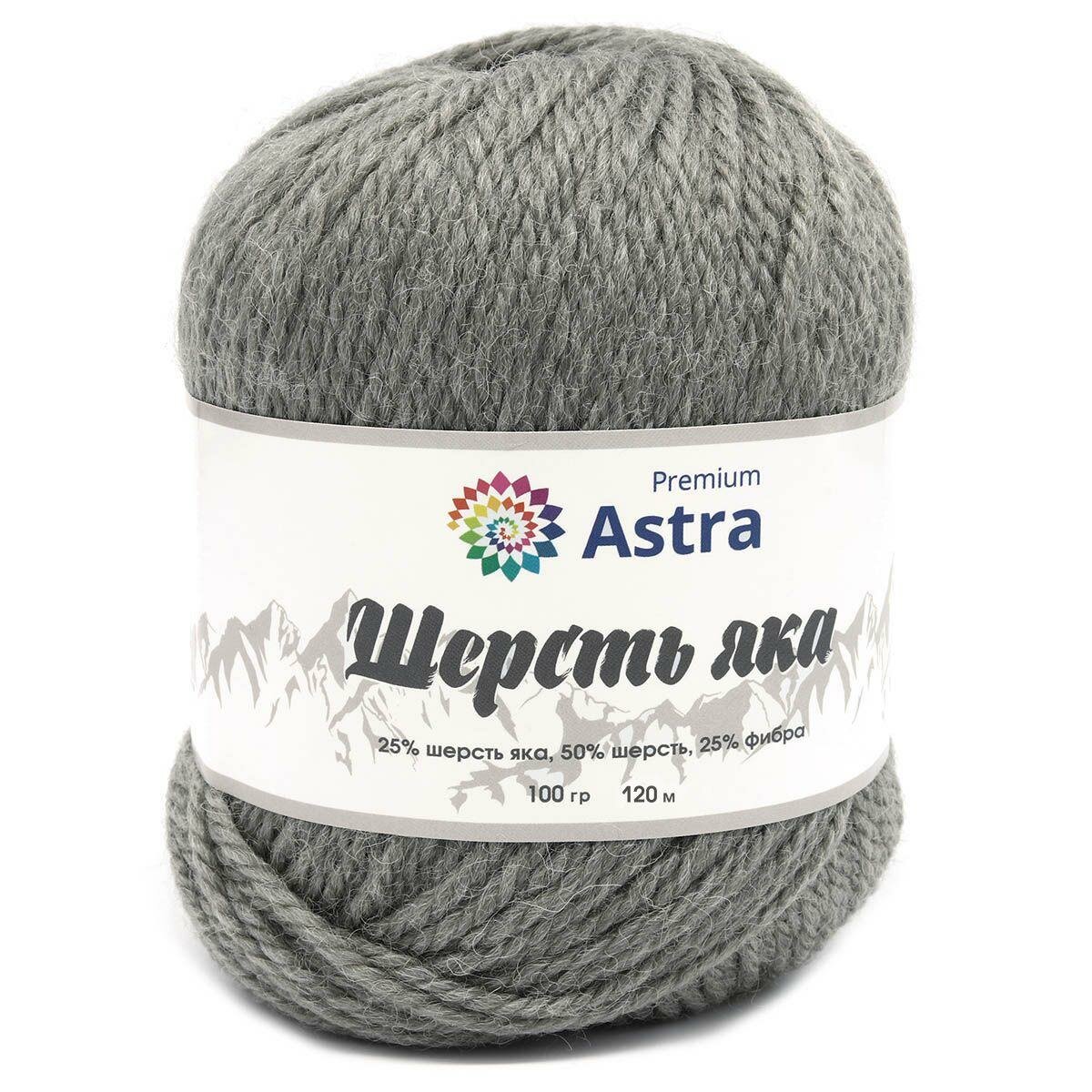 Пряжа для вязания Astra Premium 'Шерсть яка' (Yak wool) 100гр 120м (+/-5%) (25% шерсть яка, 50% шерсть, 25% фибра) (13 серый), 2 мотка