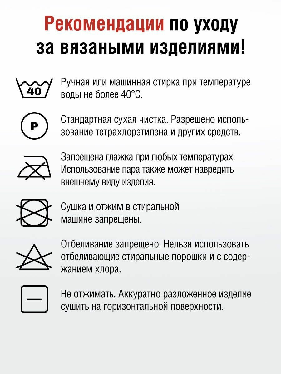 | Плотность вязания для образца 10х10 см | 34 петли х 48 рядов |
