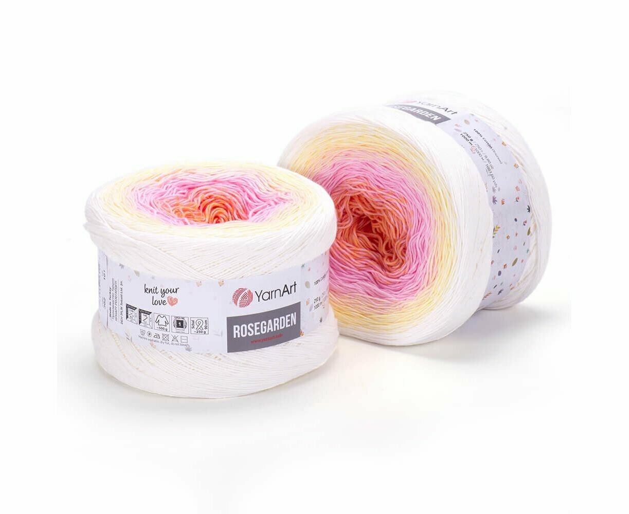 Пряжа YarnArt Rosegarden белый-розовый-персиковый-красный (304), 100%хлопок, 1000м, 250г, 1шт