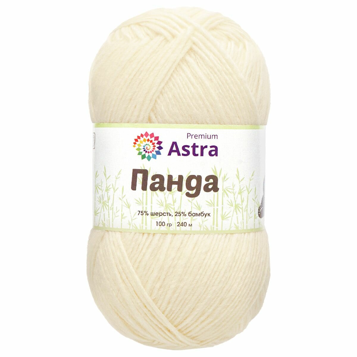 Пряжа для вязания Astra Premium 'Панда' (Panda), 100 г, 240 м (75% шерсть, 25% бамбук) (001 белый), 2 мотка