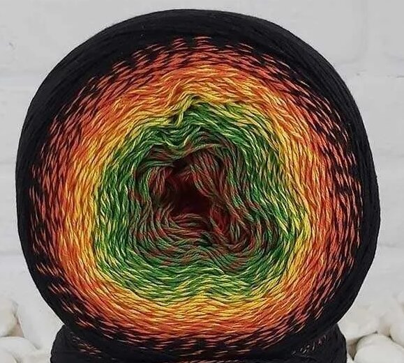 Пряжа YarnArt Flowers черный-оранжевый-желтый-зелены (267), 55%хлопок/45%акрил, 1000м, 250г, 1шт