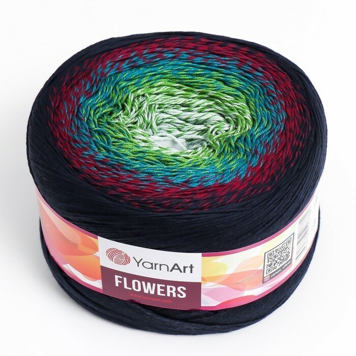 СохранитьПряжа YarnArt Flowers (ЯрнАрт Фловерс) - 1 моток цвет: 266 Темно-синий / бордовый / бирюзовый / зеленый 55% хлопок, 45% полиакрил 1000м/250г интересное: