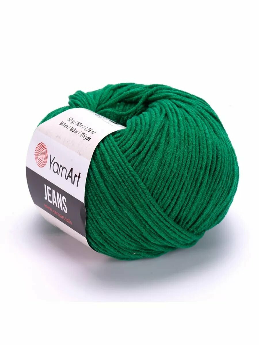 Пряжа "Jeans" цв. 63 изумрудный 55% хлопок 45% полиакрил 160м/50гр "YarnArt"