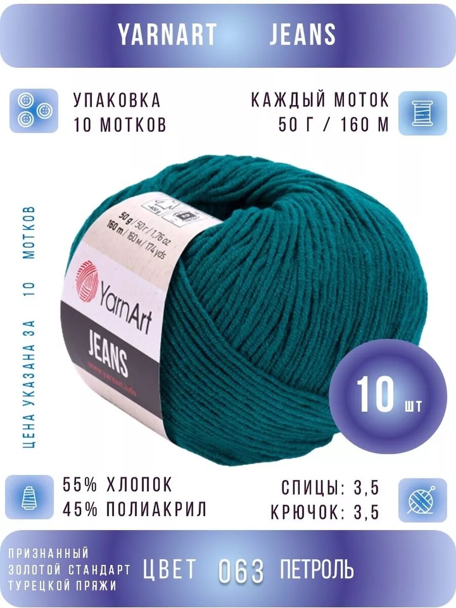 Сохранить63 петрол ЯрнАрт Джинс хлопок 10 шт *50г *160м интересное: