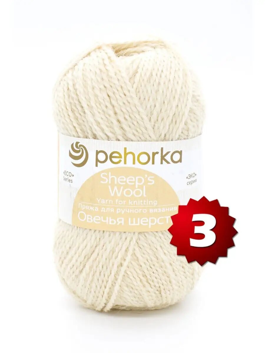 Пряжа Пехорка Овечья шерсть натуральный/светлый (530), 100%шерсть, 200м, 100г, 3шт