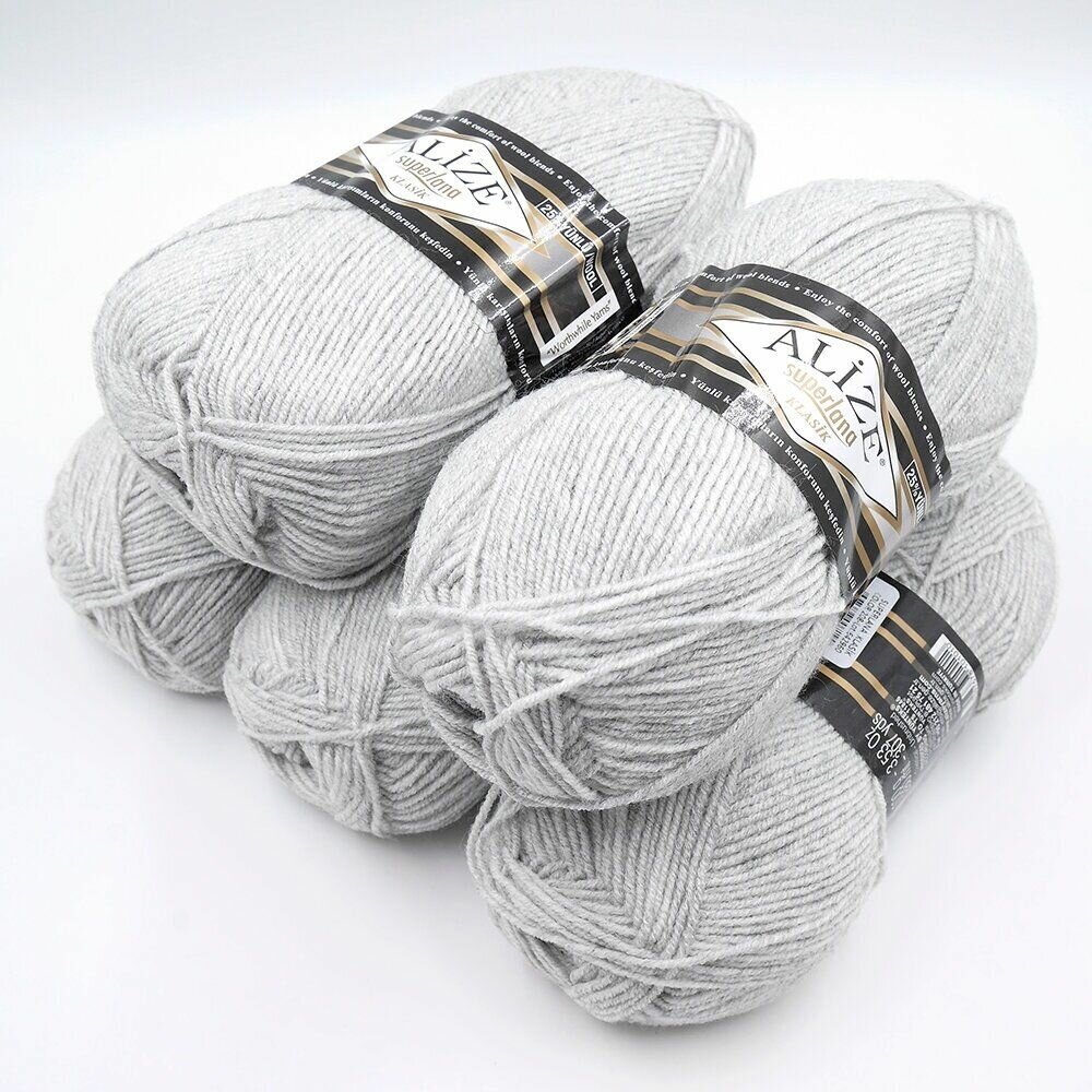 Пряжа Alize Superlana klasik (Суперлана Классик) - 2 мотка 21 серый меланж 25% шерсть, 75% акрил 280м/100г