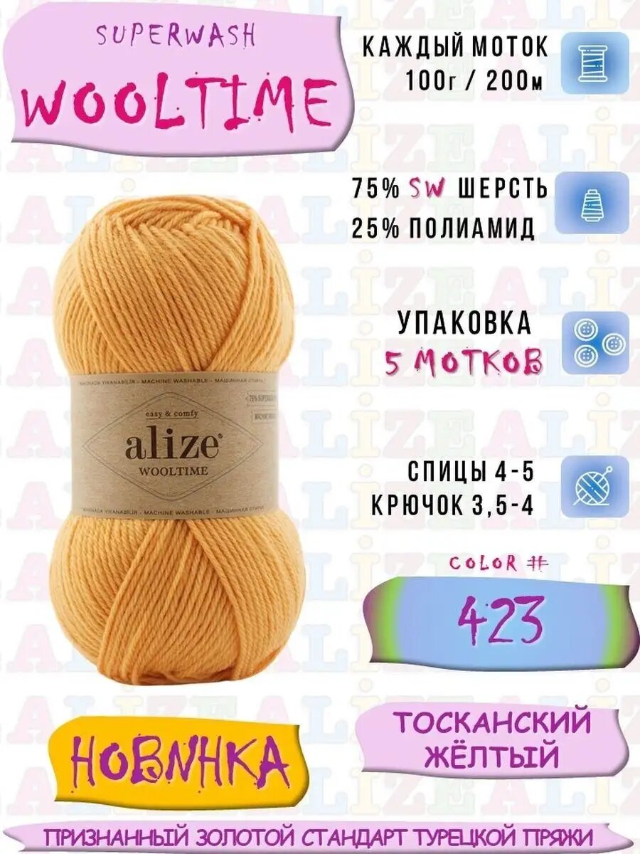 Купить Суперваш Вултайм 5*100г*200м цвет 423 Тосканский Жёлтый